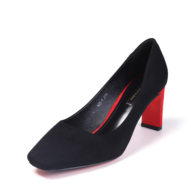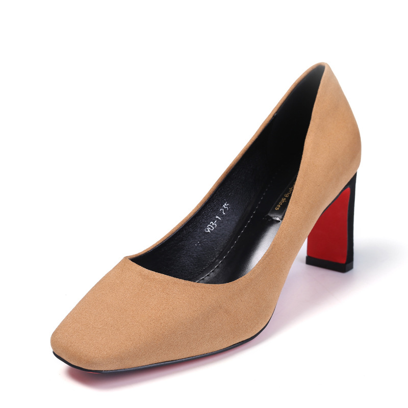 Viximo 한국 가을 새로운 우아한 스퀘어 힐 스웨이드 얕은 입 싱글 신발 여성용 스틸레토 힐 스티치 OL 작업스토어 가기