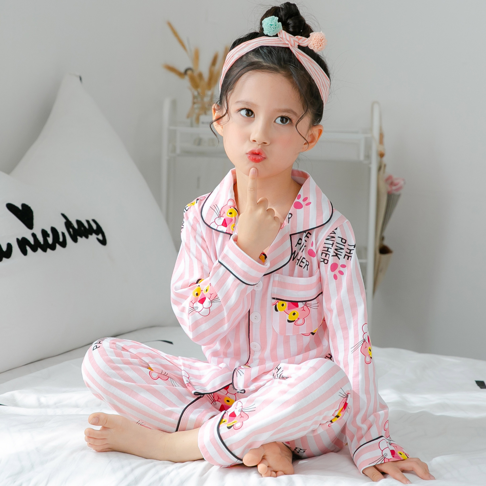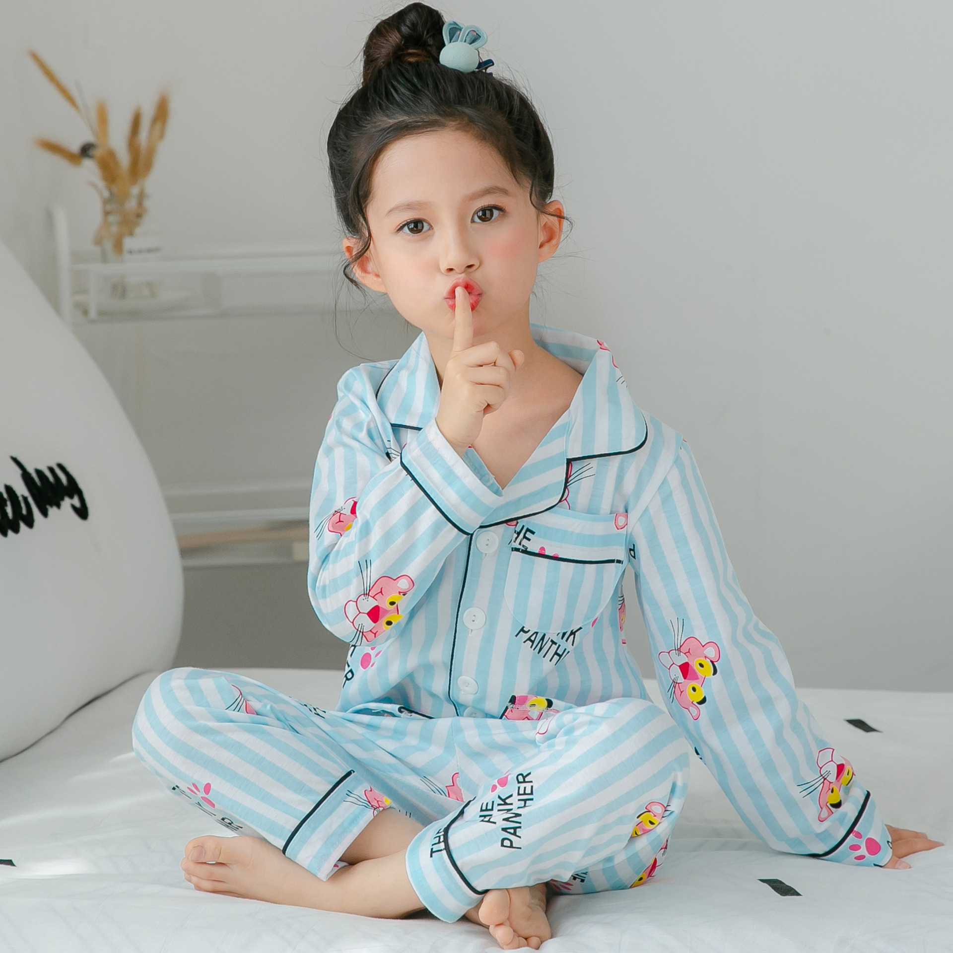 어린이 잠옷 봄 여름 가을 6535 니트 코튼 가디건 에어컨 홈 의류 소년과 소녀 긴 소매 바지 세트스토어 가기