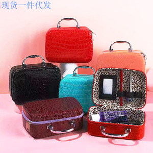 韩版石头纹化妆箱带镜子女士手提收纳包方形拉链化妆包现货