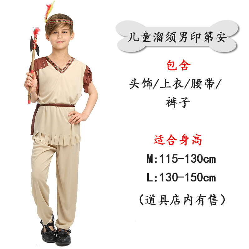 할로윈 의상 어린이 소년 원주민 소녀 인도 의상 야만인 의상 어린이 원주민 소년
