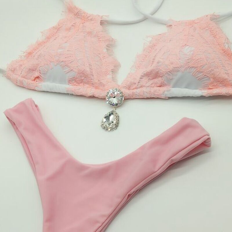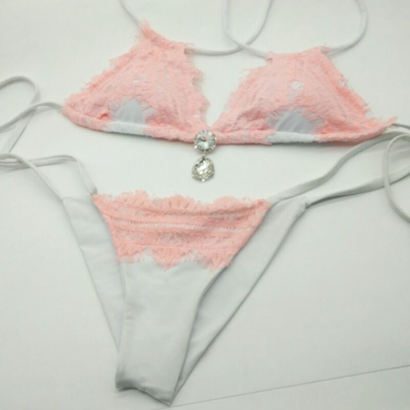 2018款蕾丝钻石吊坠泳衣比基尼厂家直销钻石泳bikini蕾丝泳装新款