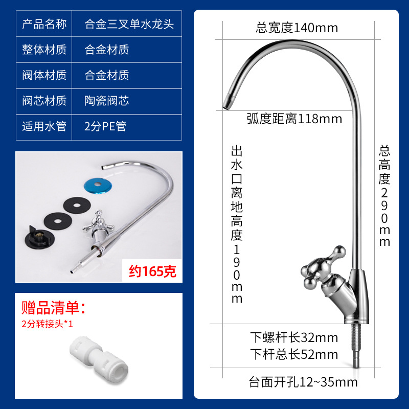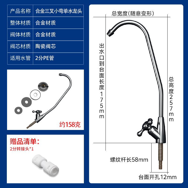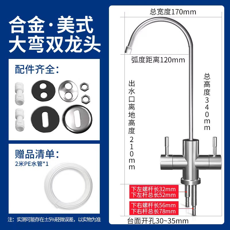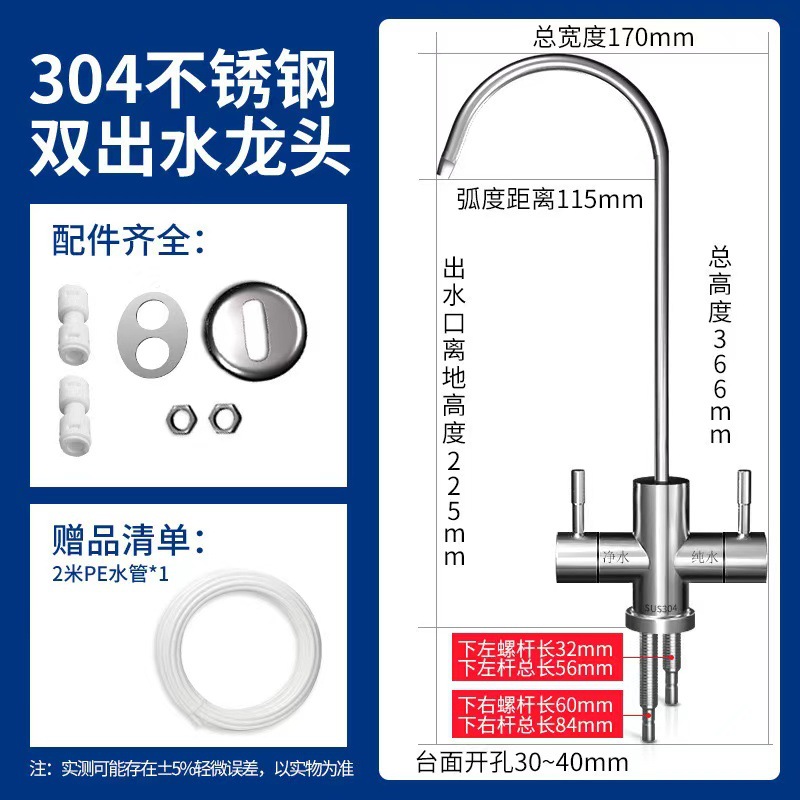 스테인레스 스틸 수도꼭지 싱글 및 더블 아울렛 큰 곡선 구세넥 가정용 순수한 물 기계 유니버설 주방 정수기 수도꼭지 액세서리