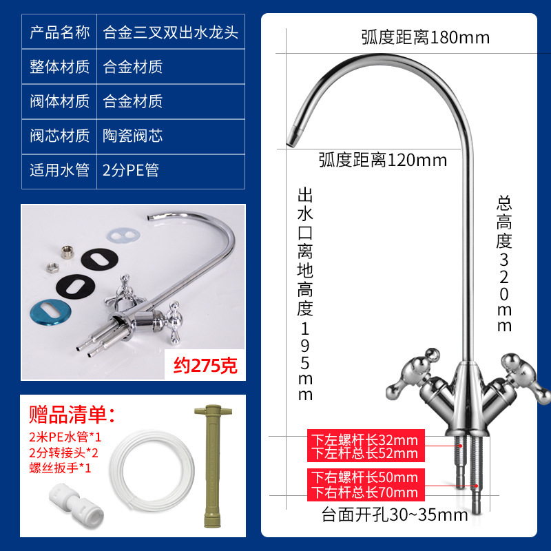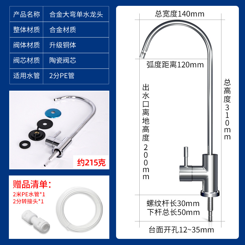 스테인레스 스틸 수도꼭지 싱글 및 더블 아울렛 큰 곡선 구세넥 가정용 순수한 물 기계 유니버설 주방 정수기 수도꼭지 액세서리스토어 가기