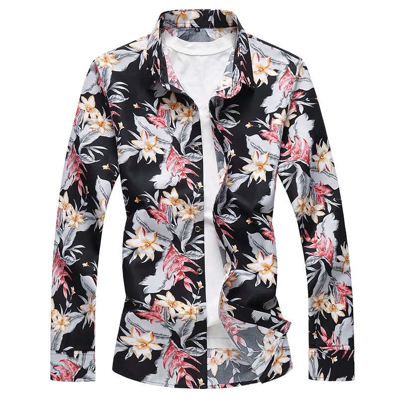 크로스 국경 대외 무역 개인 옷깃 새로운 플러스 사이즈 남자의 긴팔 꽃 셔츠 슬림핏 허리 대형 꽃 인쇄 M-7XL