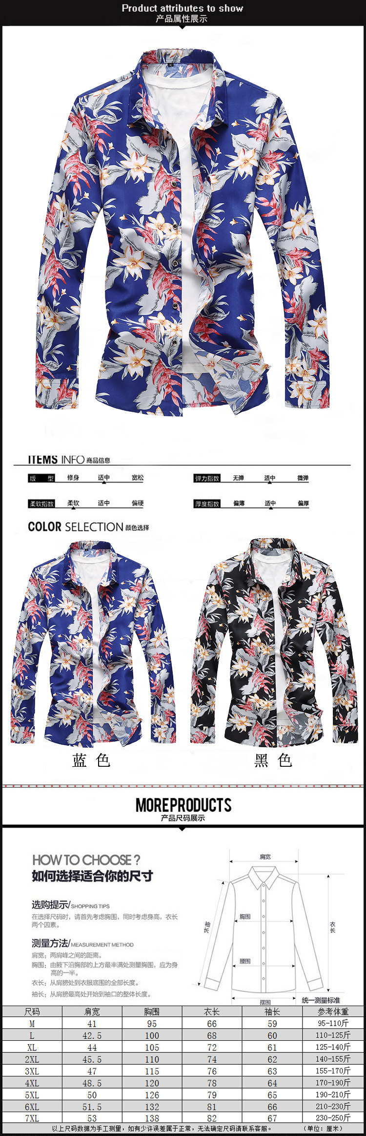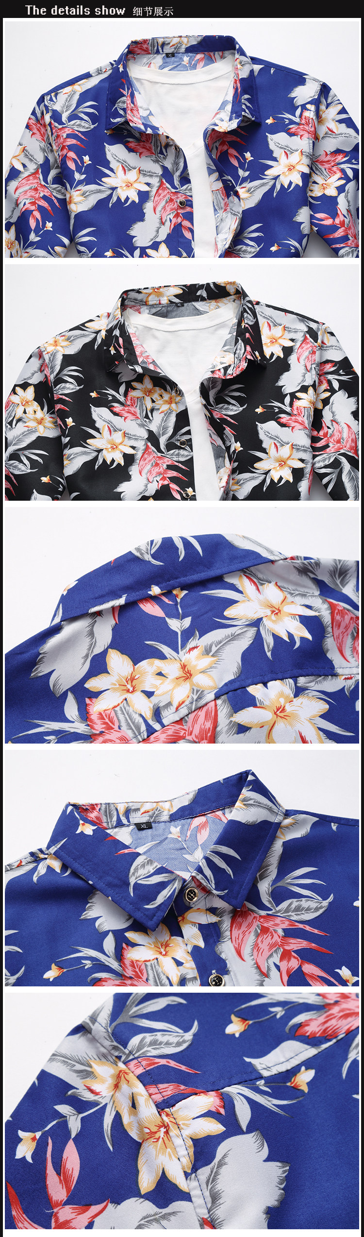 크로스 국경 대외 무역 개인 옷깃 새로운 플러스 사이즈 남자의 긴팔 꽃 셔츠 슬림핏 허리 대형 꽃 인쇄 M-7XL스토어 가기