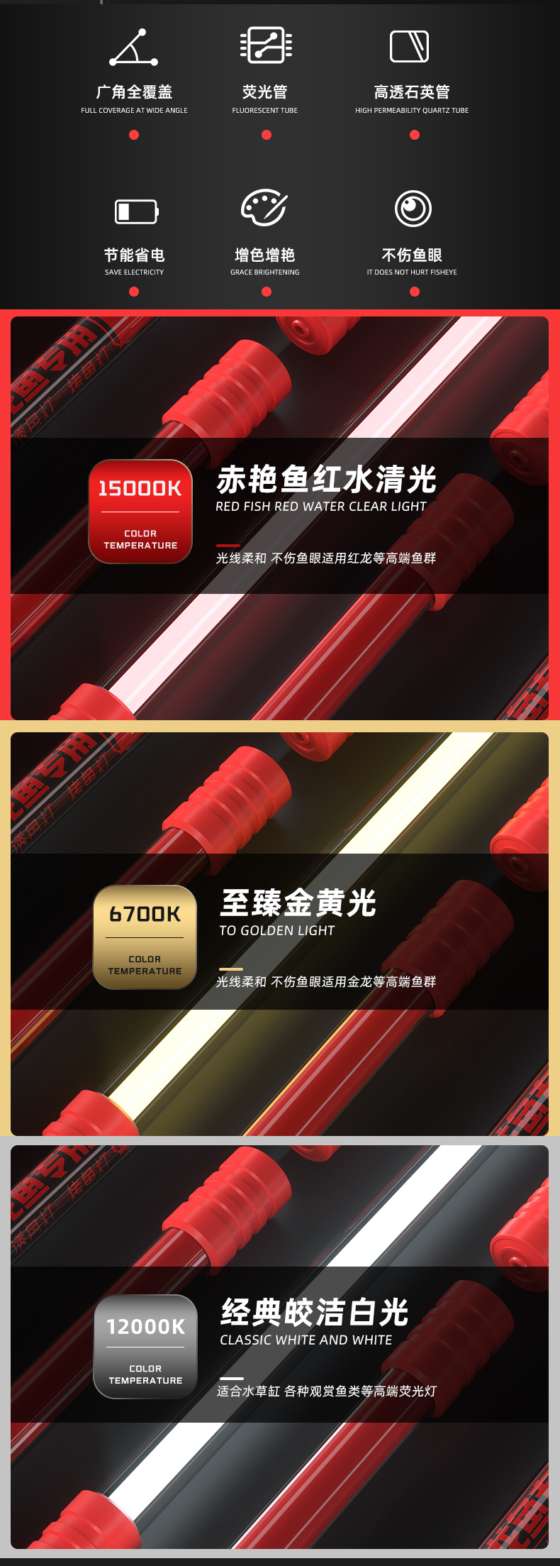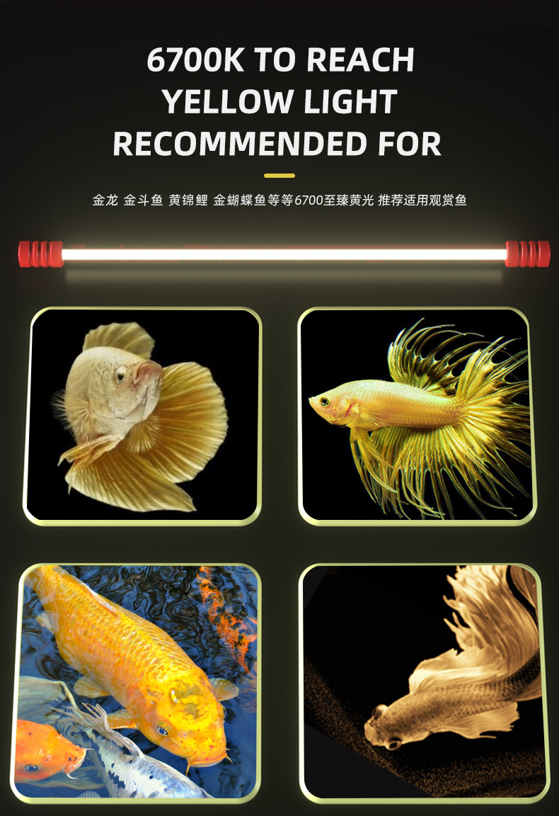 물고기 탱크 T5 드래곤 물고기 빛 수족관 머리 색깔 다이빙 빛 6700K 삼색 노란색 흰색 빨간색 15000K 머리 색깔 T5 빛