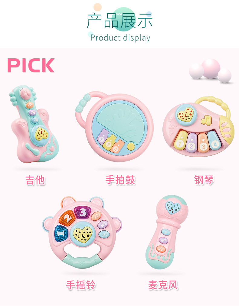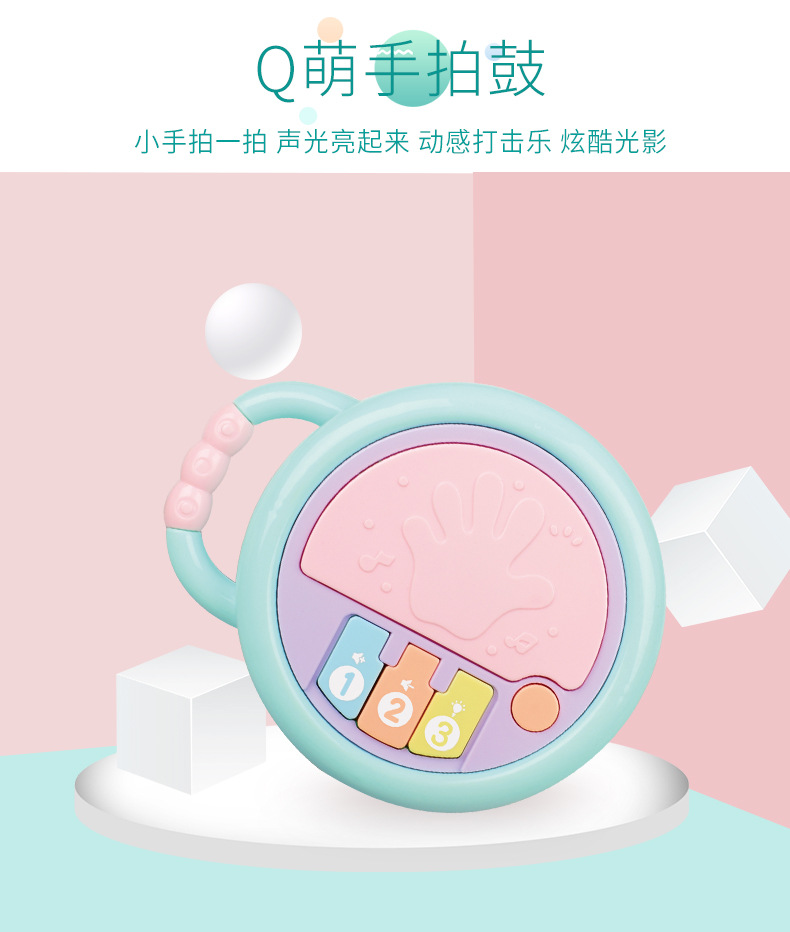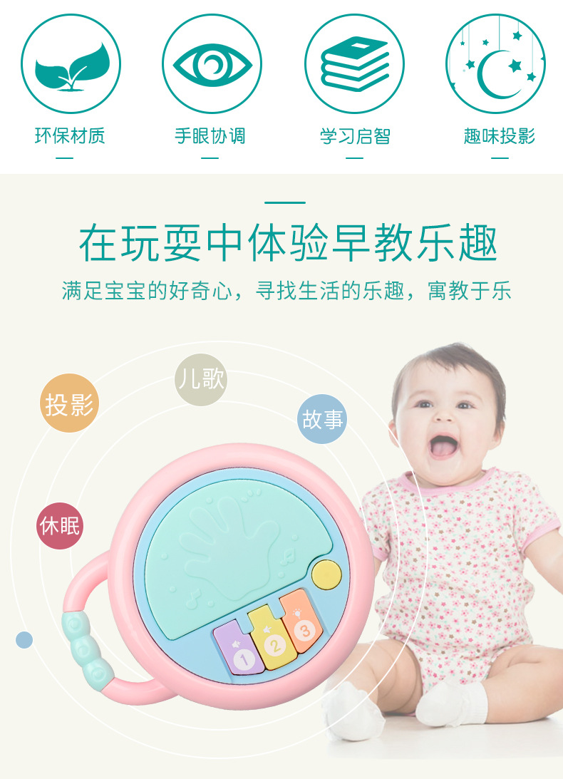 유아 장난감 교육용 조기 학습 0-2세 아기 6개월 이상 음악 이야기 잡기 훈련 손잡이 드럼 딸랑이