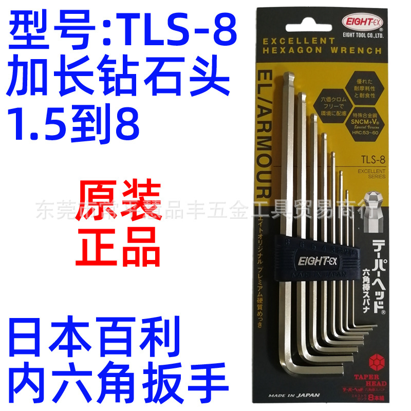 百利扳手有多种叫法,有的叫“八牌六角匙”、“百利扳手”、“EIGHT扳手”其实都是日本百利股份有限公司生产的“EIGHT-EX”品牌产品,百利扳手公司已经把用了50年“EIGHT”的商标更改为“EIGHT-EX”并且在中国商标局上注册,注册号:第11401395号,百利厂家生产的每一支2.5(含2.5)以上的扳手,都印有“EIGHT-EX”品牌印,以下是中国商标局网上信息截图。
