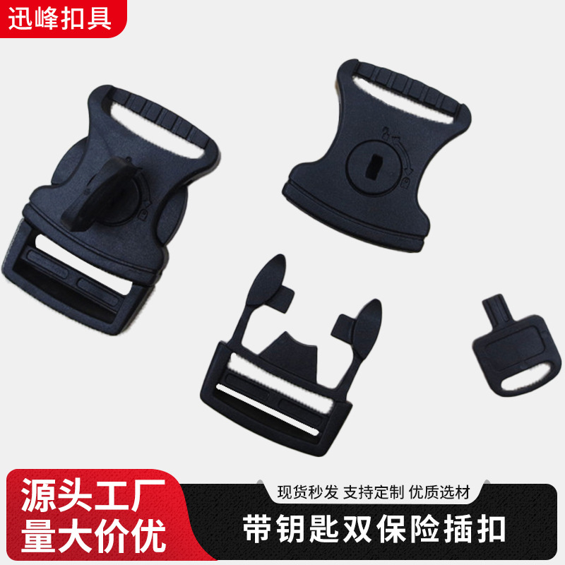 插扣一般是由两部分构成:即公扣和母扣,插扣后面挂织带的地方一般是单档或双档,单档的是不可调节的,双档的是可调整式的,材质以塑料中的聚丙烯(PP)、聚甲醛(POM,俗称赛刚)、尼龙(PA)为主。该产品适用于包装、行李箱、户外用品、汽车用品扣以及沙发内置扣等等,用途广泛。可根据客户要求更改产品颜色和材质。若需了解更多产品信息请及时联系客服!