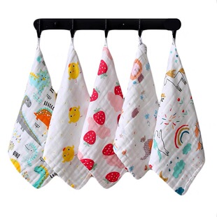 면 더블 거즈 스퀘어 스카프 자카드 패브릭 유치원 아기 선물 땀 흡수 격자 무늬 면 대외 무역 거즈 스퀘어 스카프스토어 가기