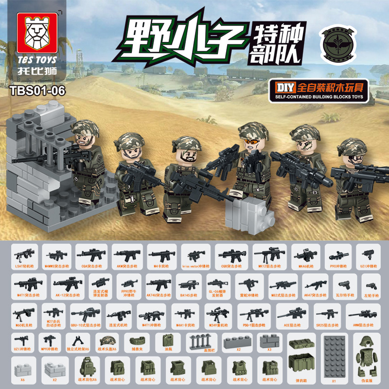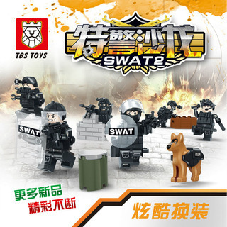 【产品名称】:TBS11-16特警沙龙带武器防弹衣警犬装备人仔益智儿童拼装积木玩具