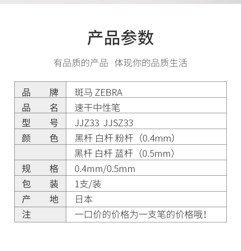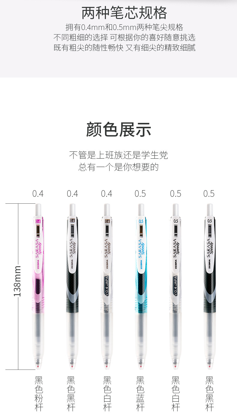 일본 얼룩말 JJZ33 프레스 퀵 드라이 연속 잉크 속기 부드러운 중립 펜 0.4/0.5스토어 가기