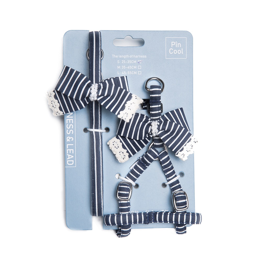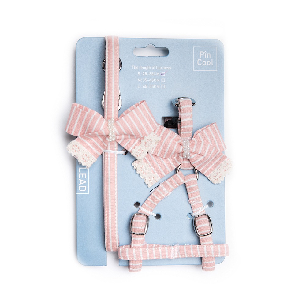 产品名称:PINCOOL猫狗条纹蝴蝶结全棉透气胸背带套装