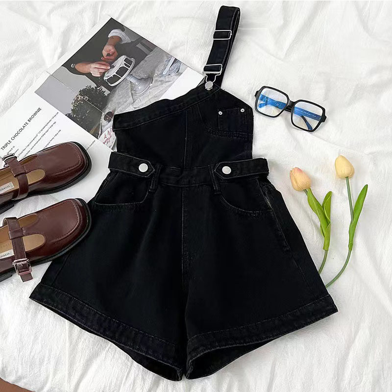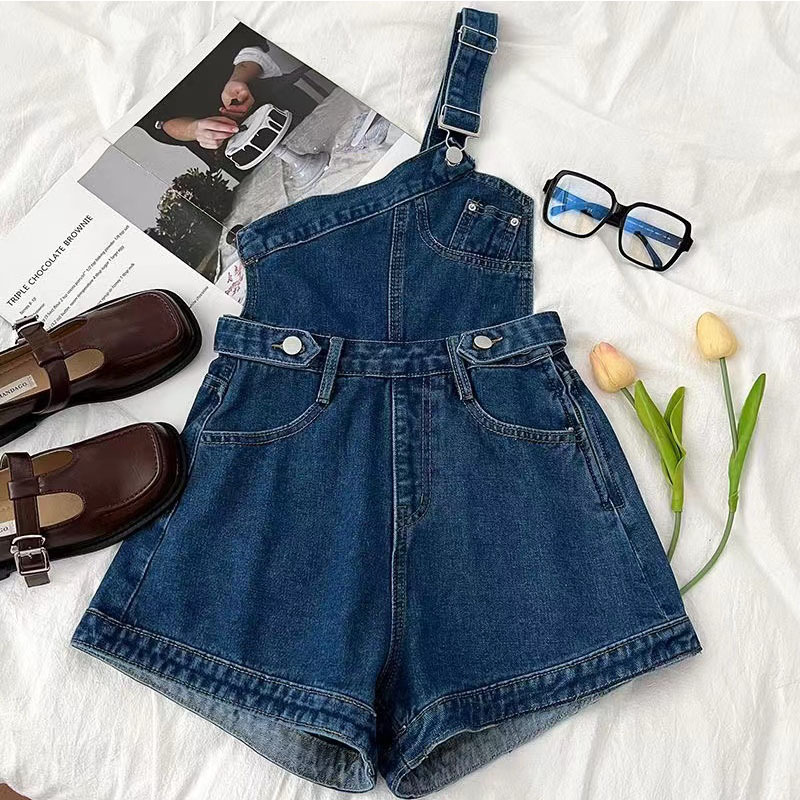 데님 서스펜더 바지 넓은 다리 바지 캐주얼 바지 여성용 작은 레트로 트렌디 패션 연령 감소 여성을위한 맞춤형 청바지스토어 가기