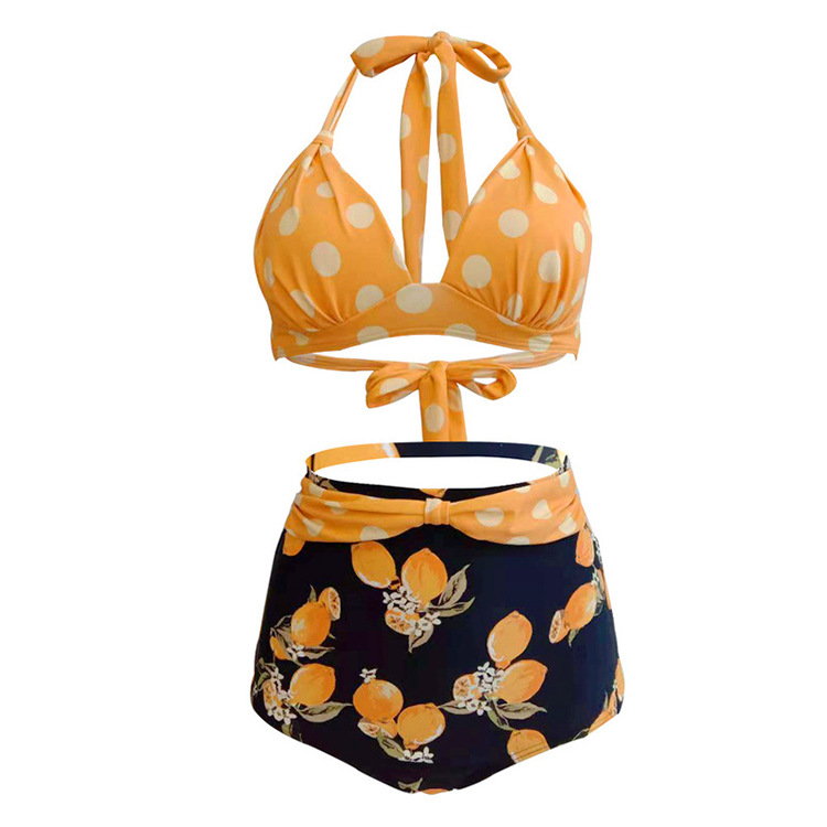 크로스 보더 유럽과 미국 웨이브 포인트 플러스 사이즈 하이 웨이스트 수영복 여성 스트랩 해외 무역 스플릿 아마존 수영복 여성 노 스틸 링 섹시스토어 가기