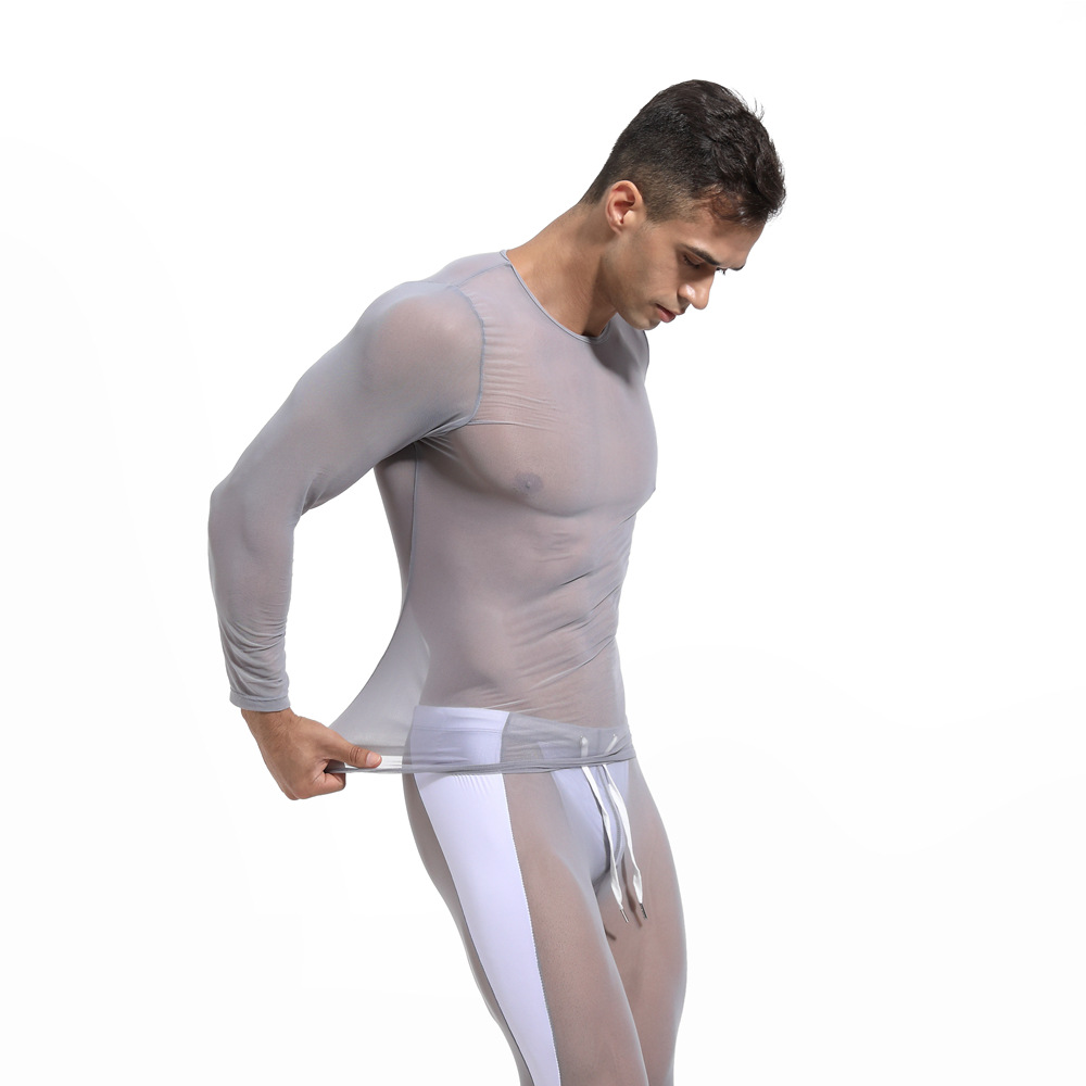 유럽과 미국의 대외 무역 새로운 메쉬 투명 고탄성 남성 피트니스 달리기 사이클링 스포츠 트레이닝 스타킹 긴 소매