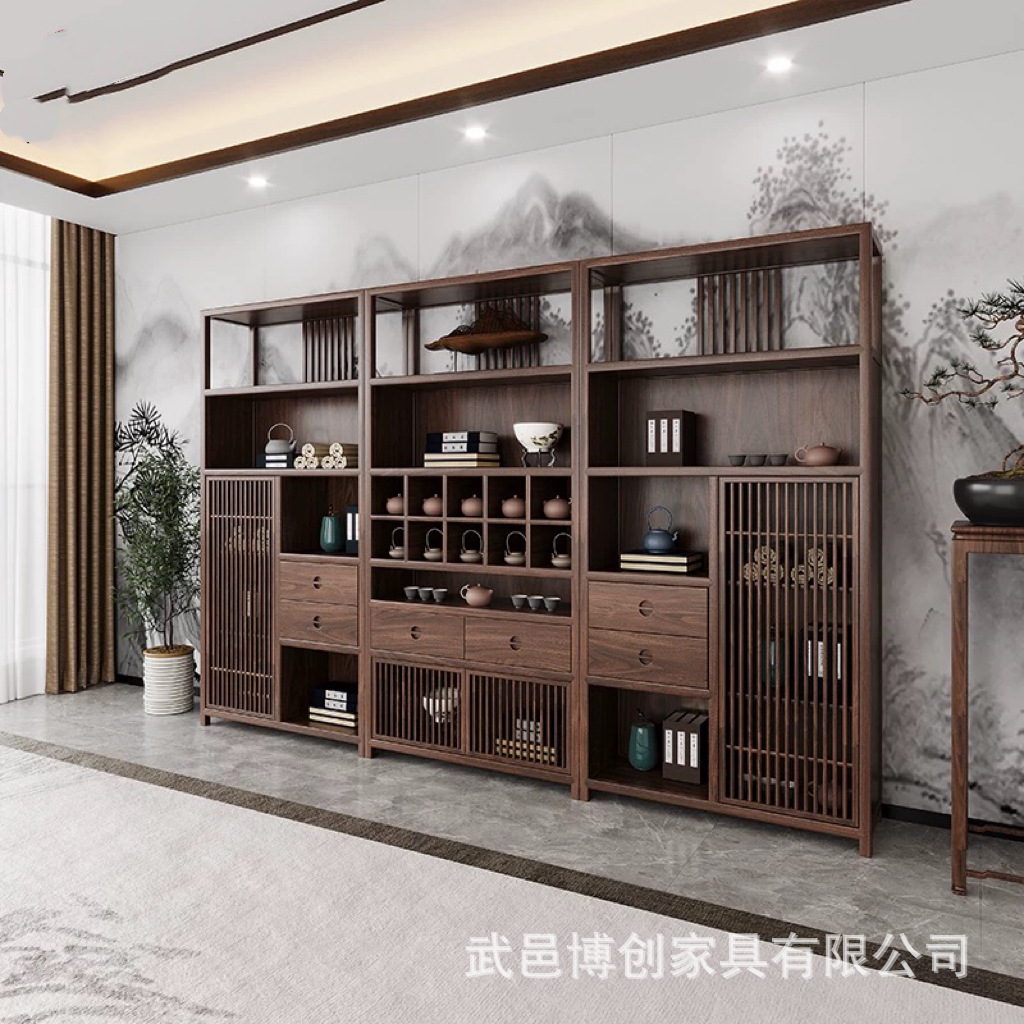 새로운 중국 스타일 골동품 랙 오래 된 느릅 나무 책장 조합 사무실 단단한 나무 책장 선반 저장 랙 티 룸 차 랙