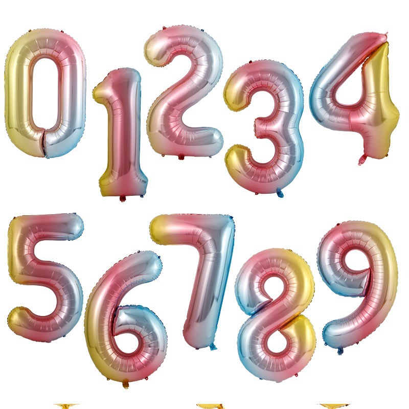 독립 포장 32 인치 디지털 알루미늄 필름 풍선 골드 실버 중간 0-9 디지털 알루미늄 호일 풍선 장식 생일스토어 가기