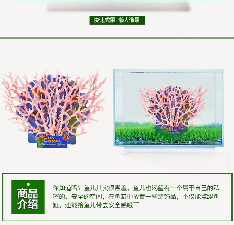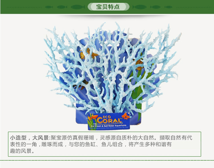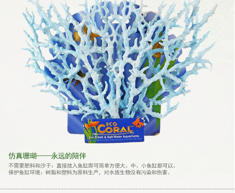 水族箱里的仿真珊瑚都是用对水质没有 影响的环保材料PU.PVC.树脂制做的。如果您只是用珊瑚来给水族箱做一般装饰,用仿真珊瑚应该是不错的选择:规格:大号高19厘米,总宽约26厘米左右,重约135克,
