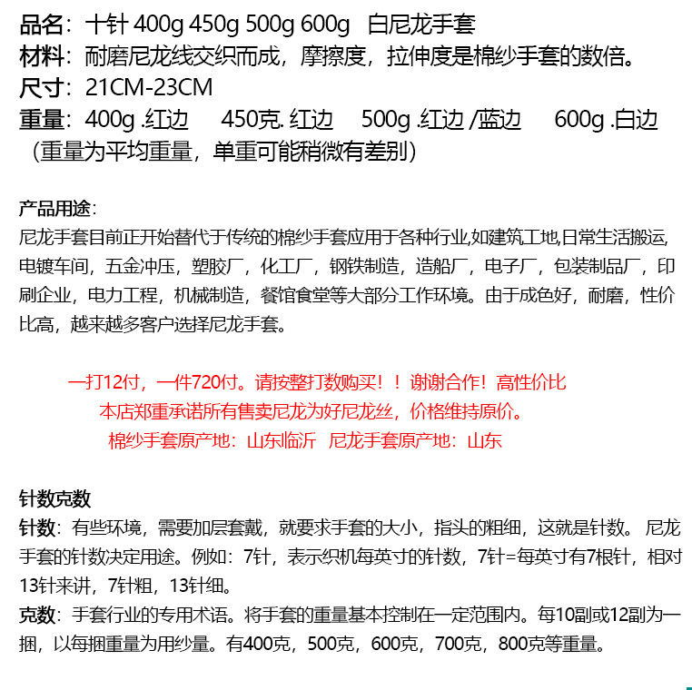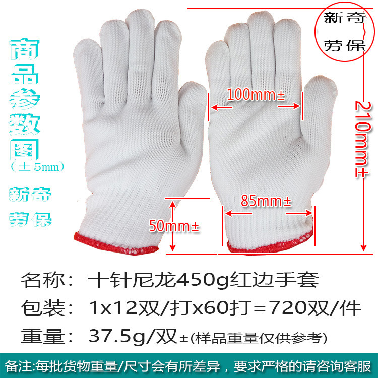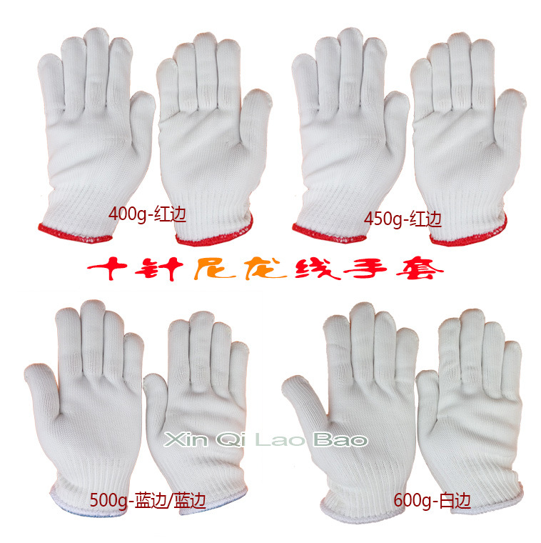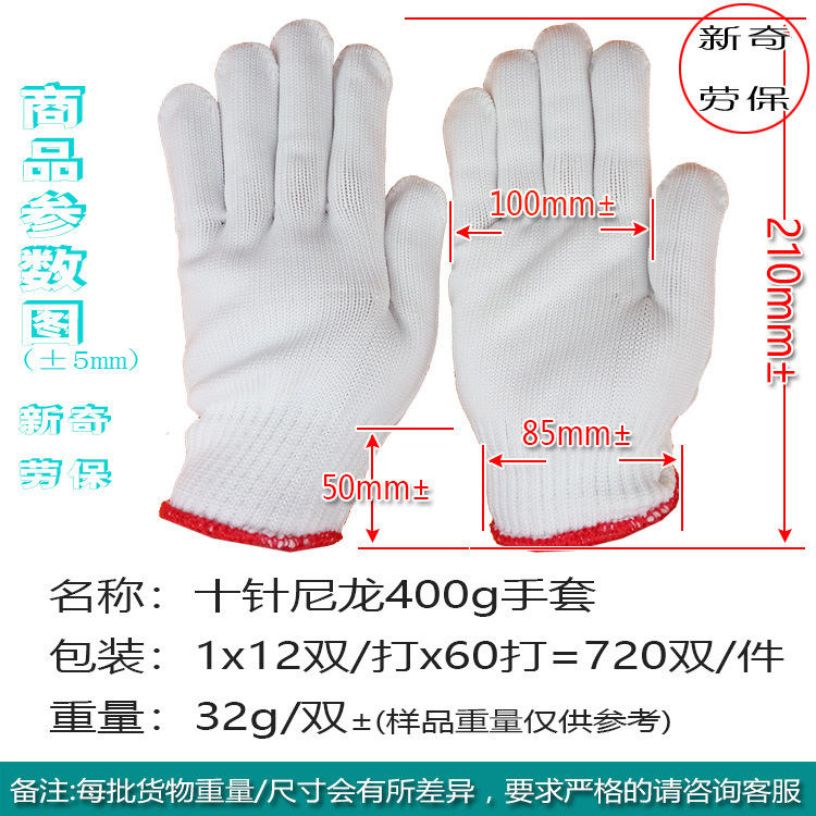 10 바늘 흰색 나일론 장갑 400g500g600g700g 니트 노동 나일론 실 장갑 미끄럼 방지 농축스토어 가기