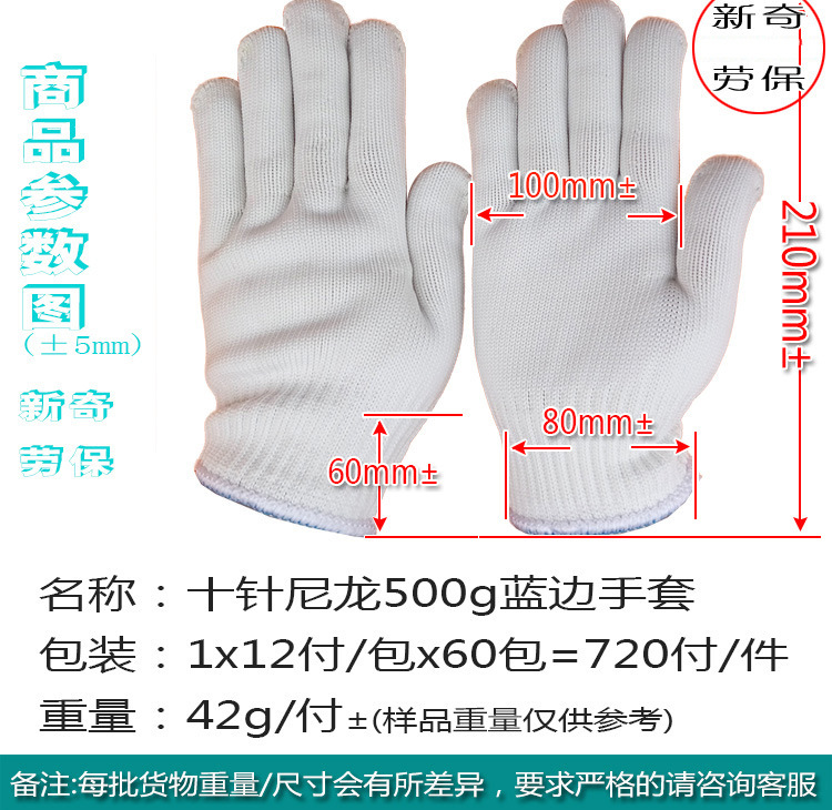 • 500g 10 핀 화이트 나일론 장갑 01013 #
