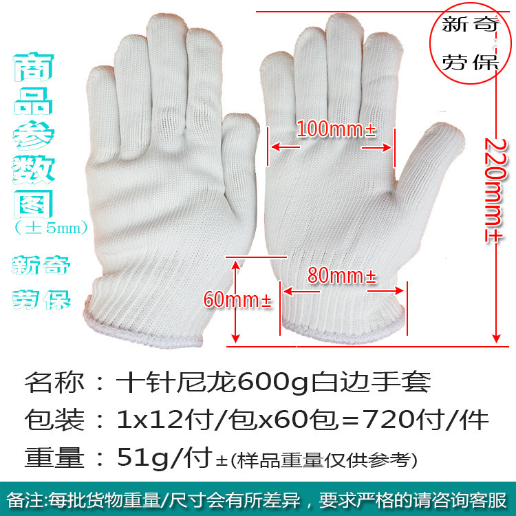 • 600g 10 핀 화이트 나일론 장갑 01017 #