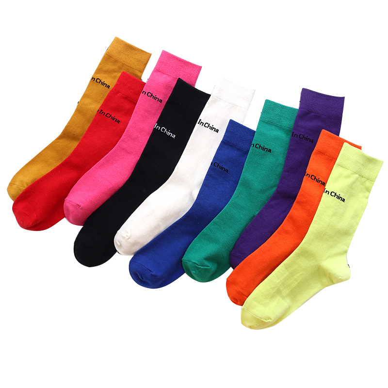 저렴한 2024 유행 코튼 여성 캔디 컬러 편지 중고 양말 여성을위한 양말 포장 스포츠 양말