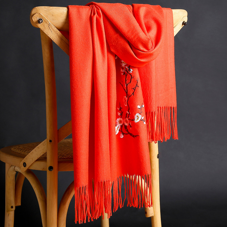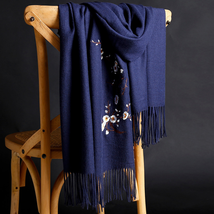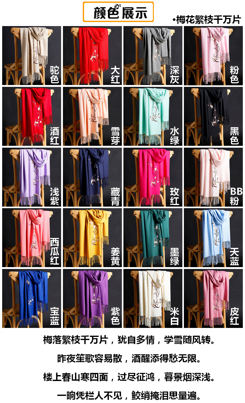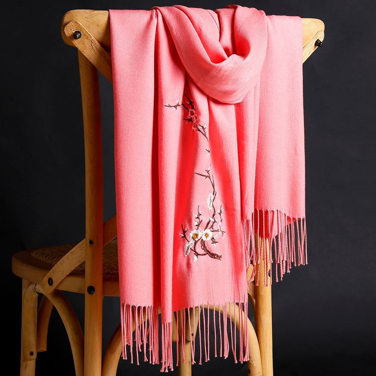 2024 가을 겨울 모조 캐시미어 자수 스카프 민족 스타일 프린지 숄 신상 방한 보온 단색 여성용 스카프스토어 가기