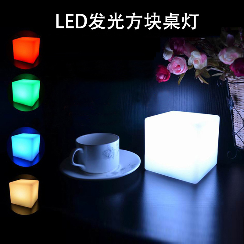 跨境直供方形酒吧桌面灯 餐厅创意氛围七彩装饰台灯LED发光方块灯