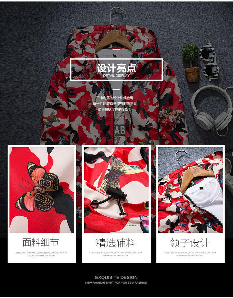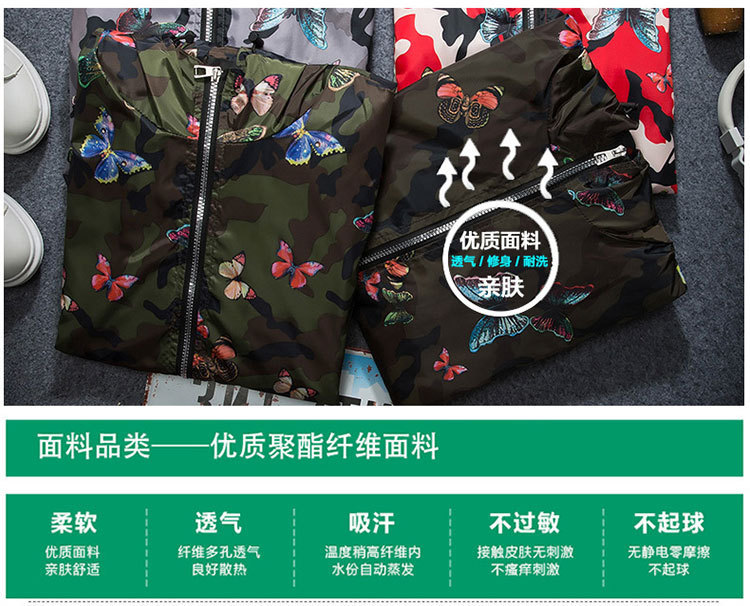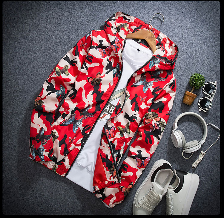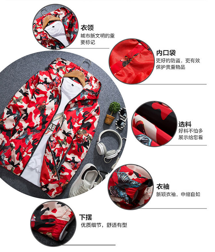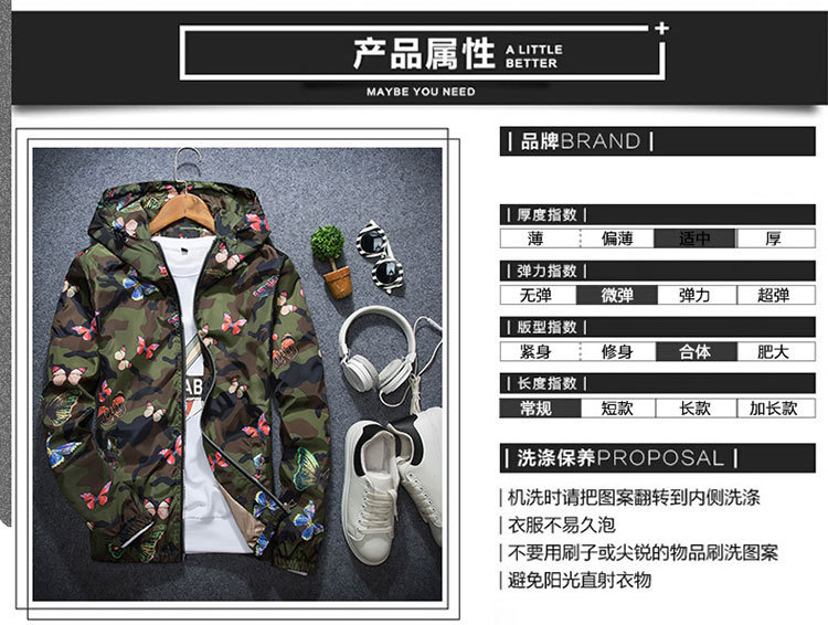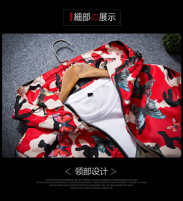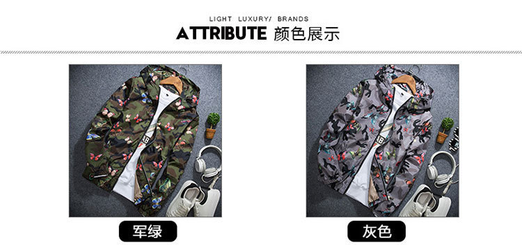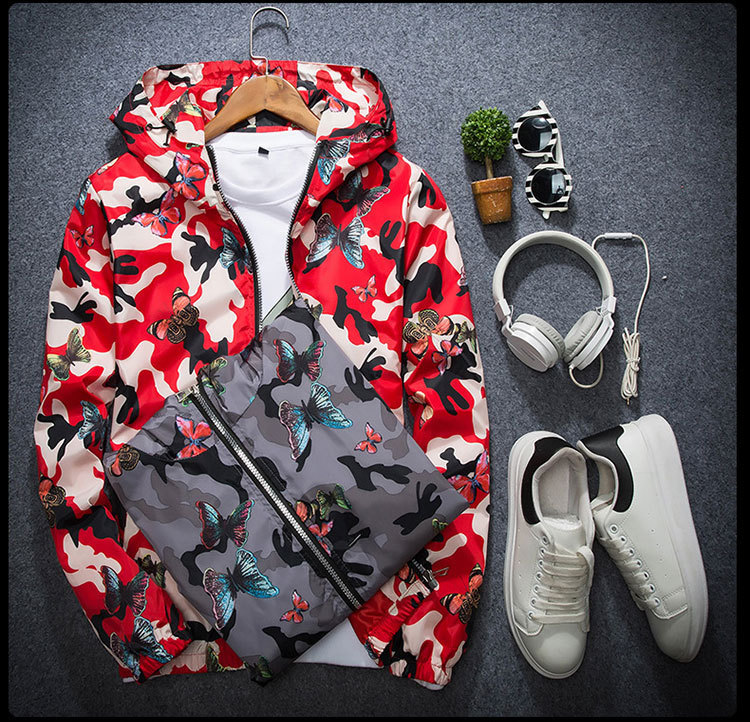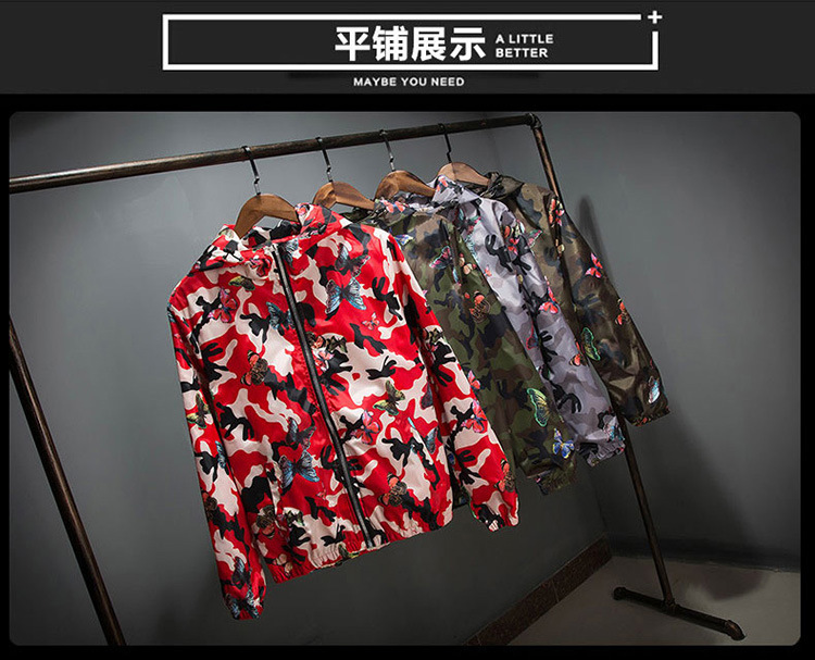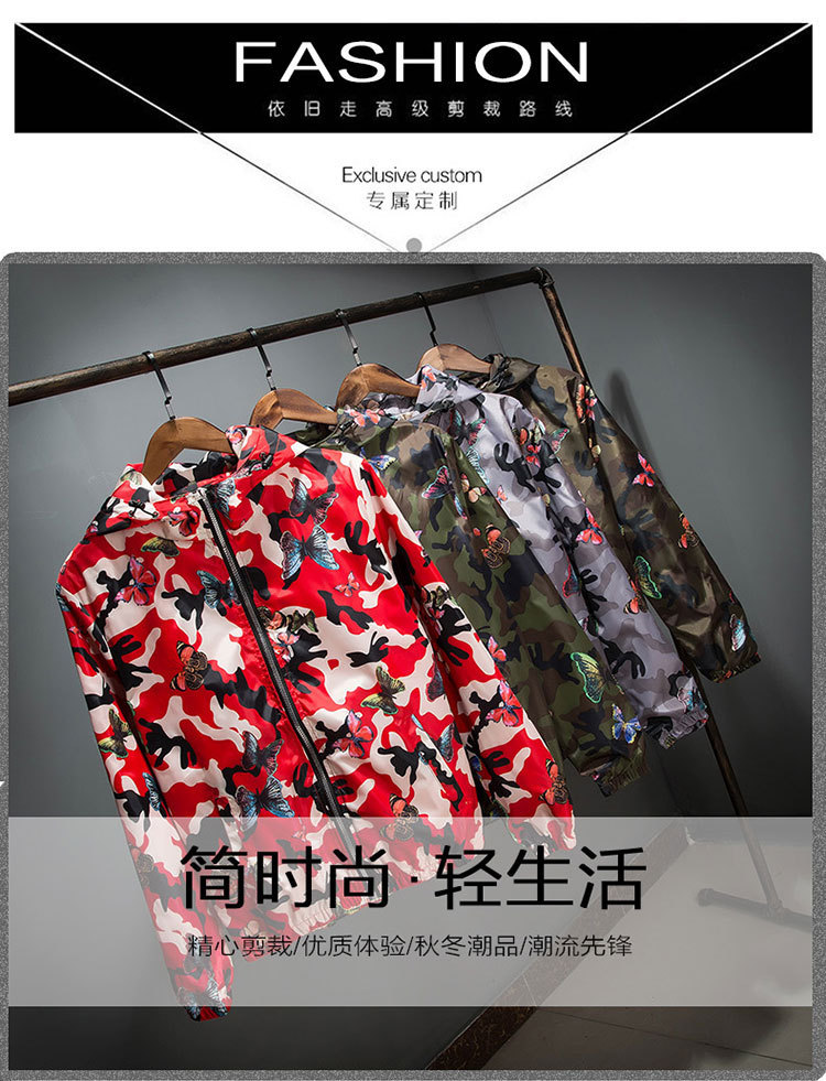 대외 무역 봄과 가을 남성 코트 커플 후드 재킷 남성용 청소년 얇은 위장 꽃 나비 재킷스토어 가기