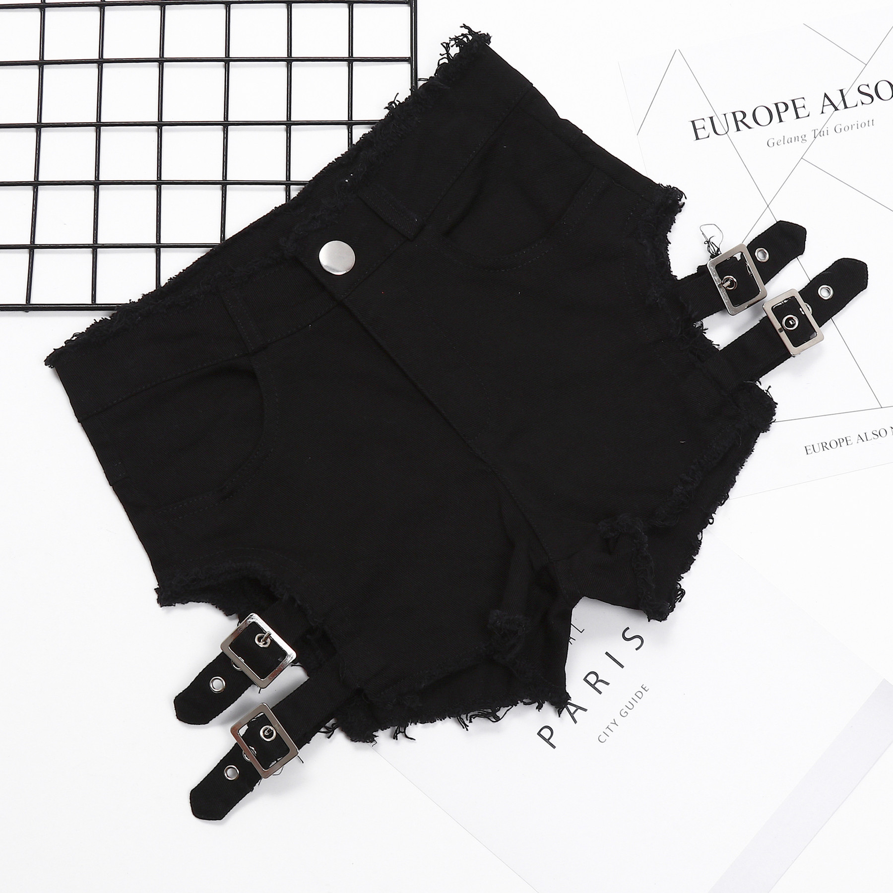 새로운 하이 웨이스트 슬리밍 데님 반바지 사이드 하이 크로스 스트랩 타이트 여성용 바지 유럽과 미국 스타일 코튼 여성용 바지 야간 상점스토어 가기