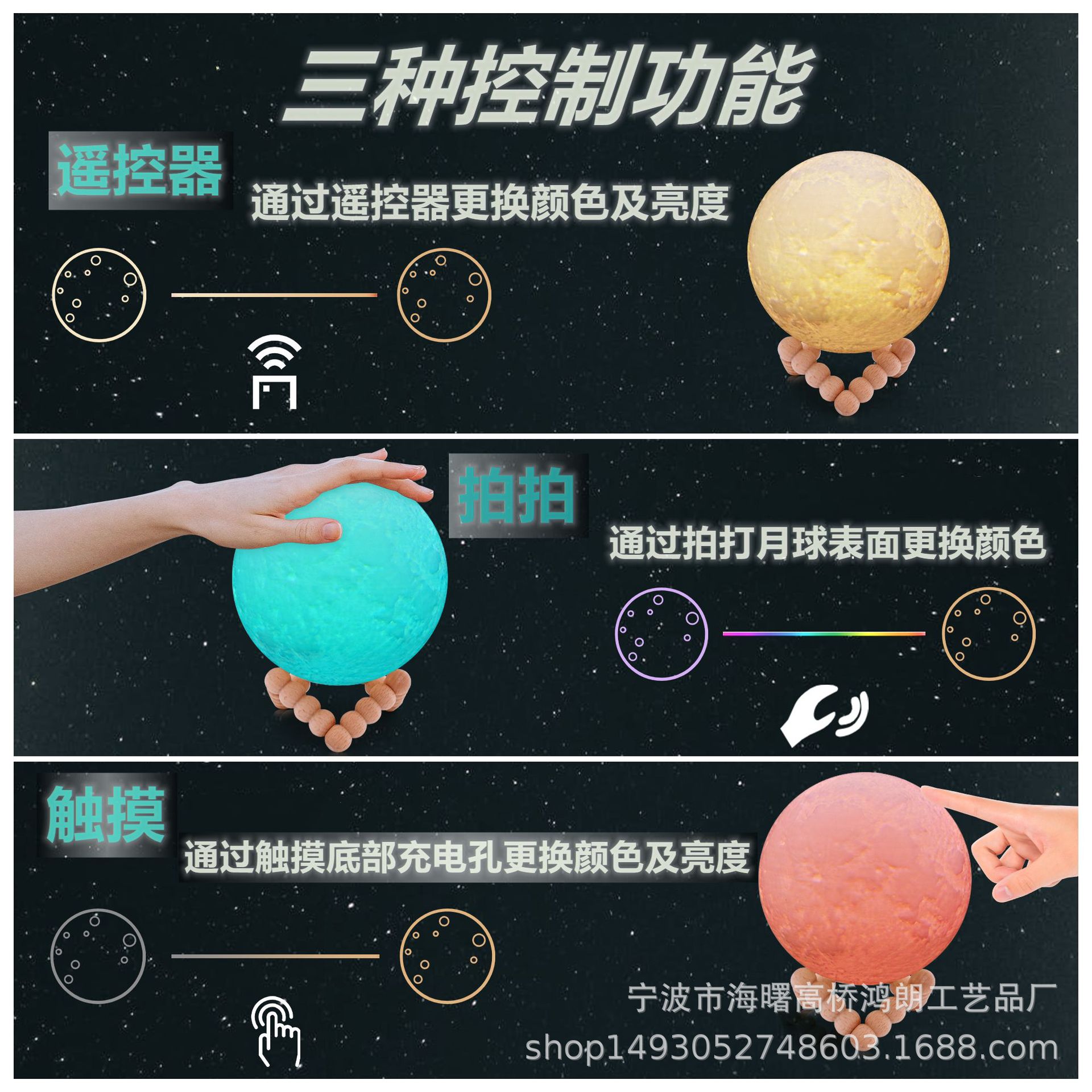 아마존 뜨거운 달 빛 USB 충전 달 빛 다채로운 터치 LED 침대 옆 탁자 램프 유도 램프 발렌타인 데이