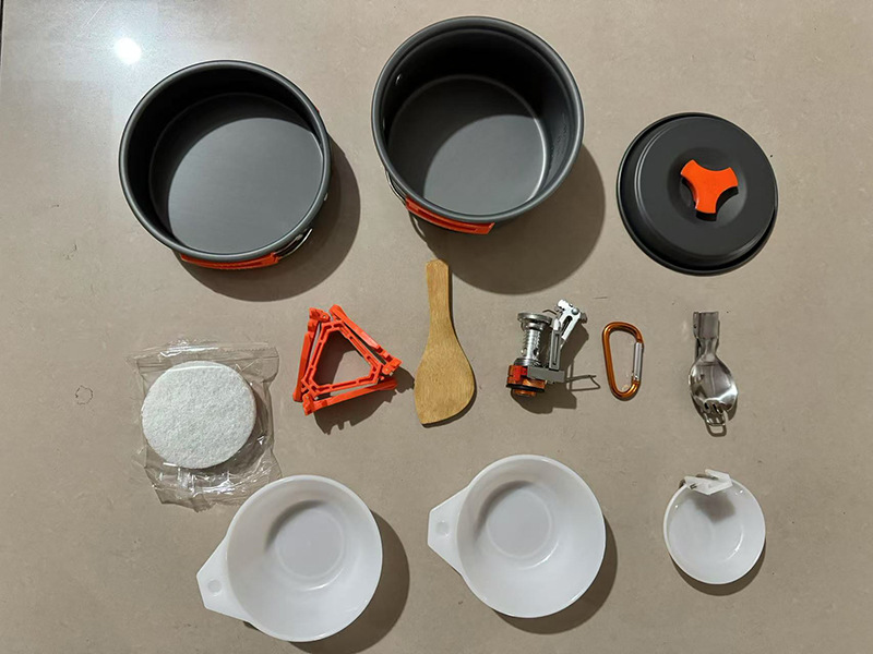 오투 야외 휴대용 냄비 세트 캠핑 조리기구 프라이팬 1-2 인 캠핑 냄비 세트 냄비 AT6385-1