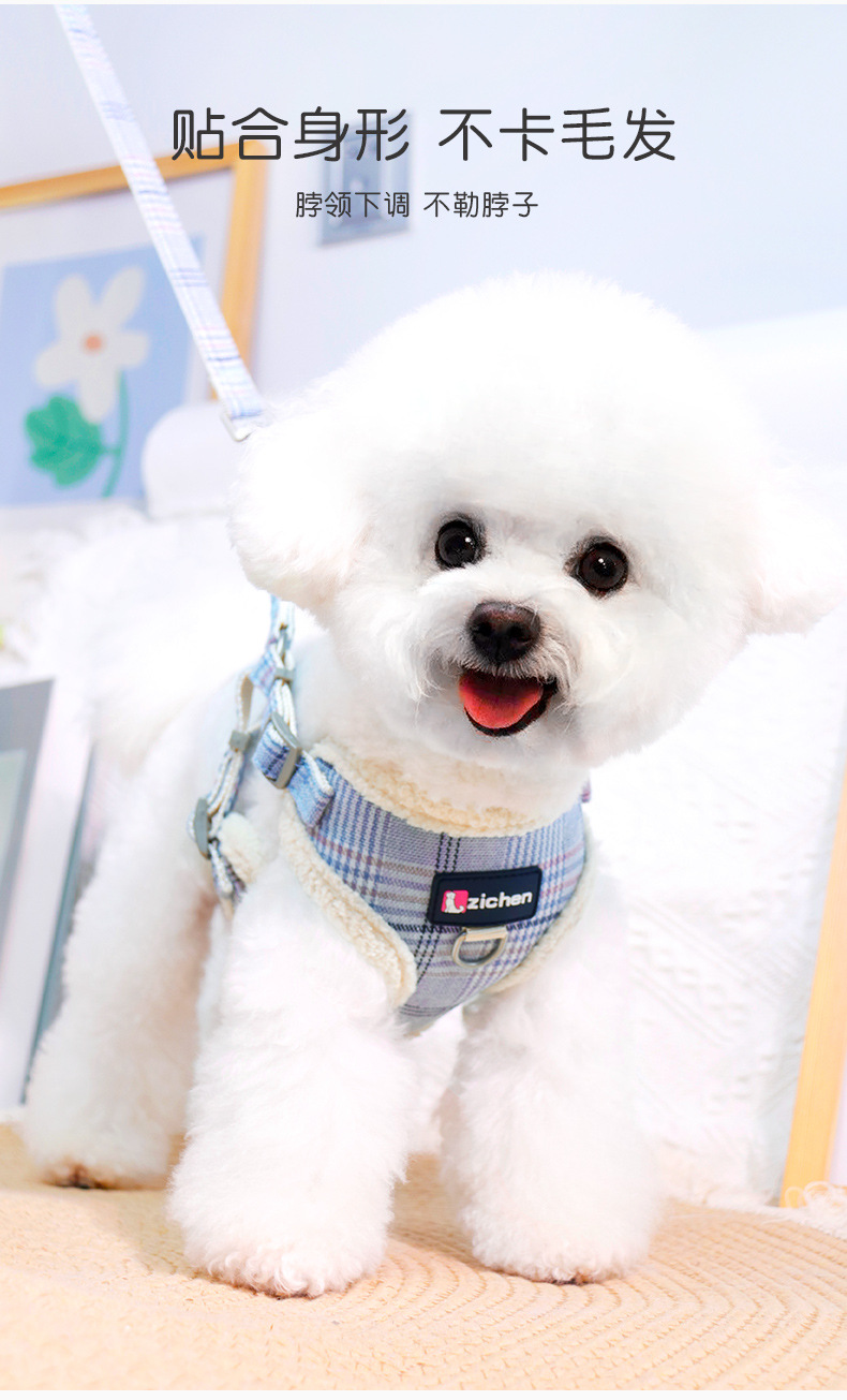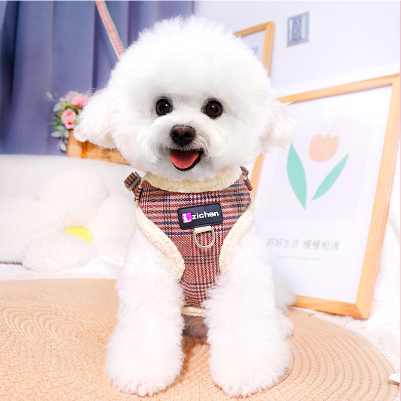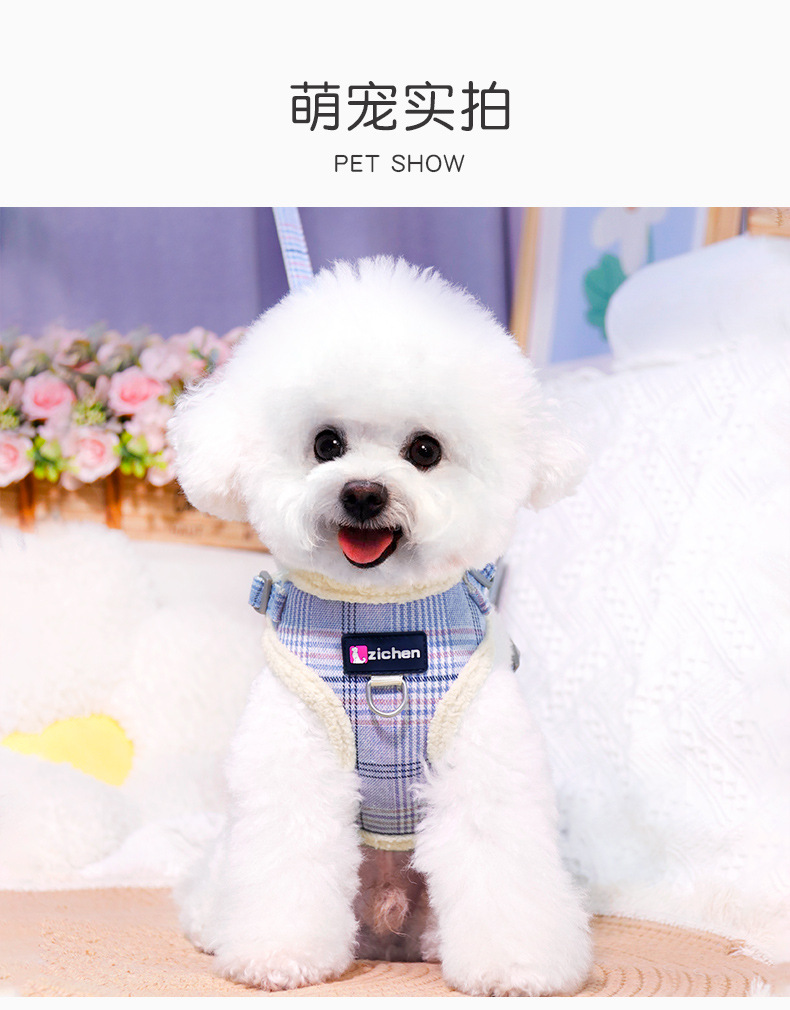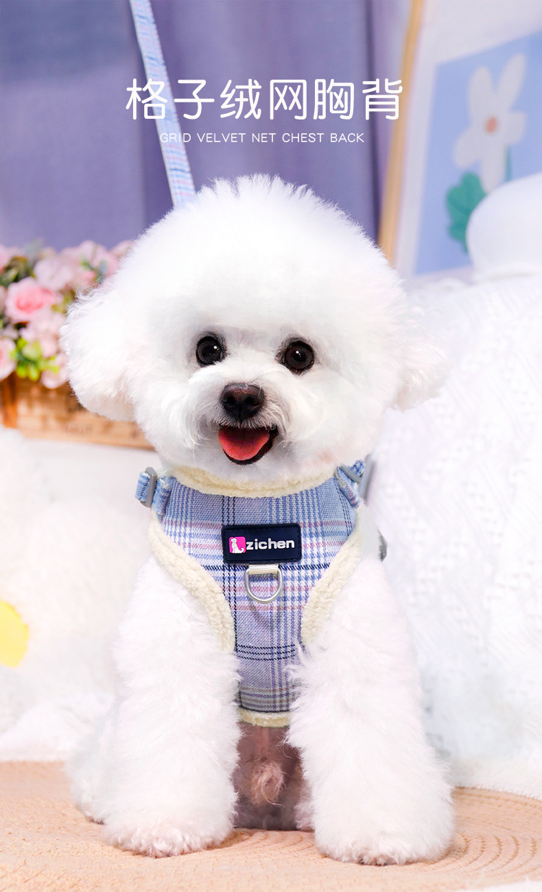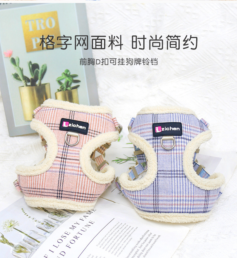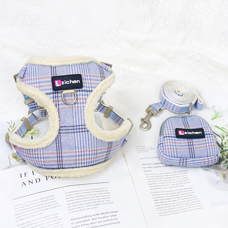 Zichen 애완 동물 제품 공장 겨울 벨벳 가슴 스트랩 견인 벨트 스낵 가방 격자 무늬 가슴 개 가죽 끈