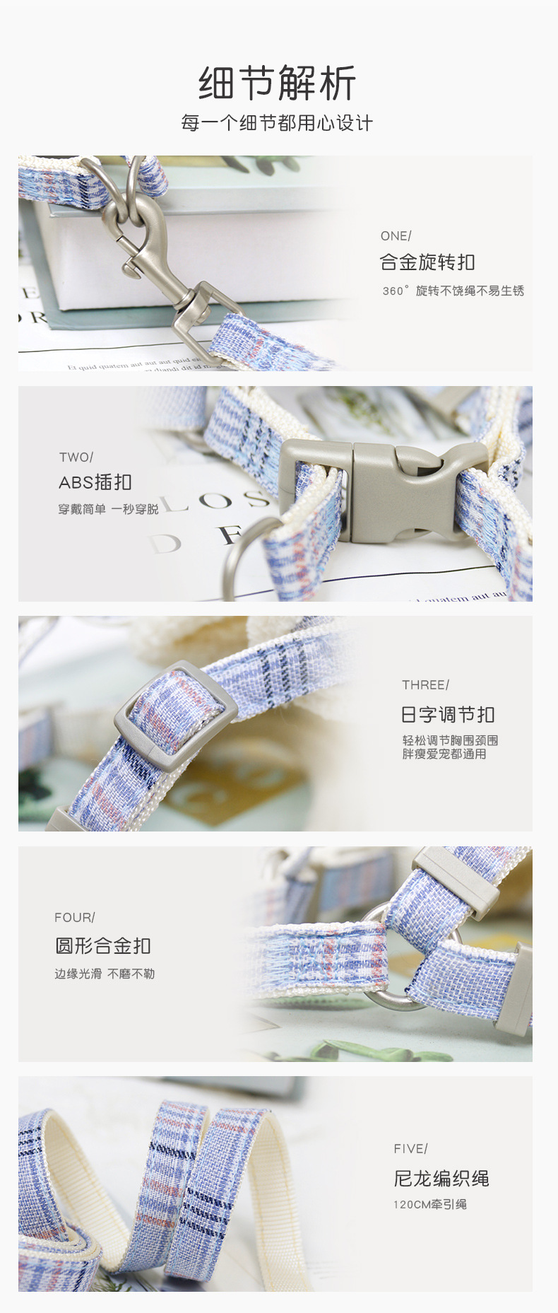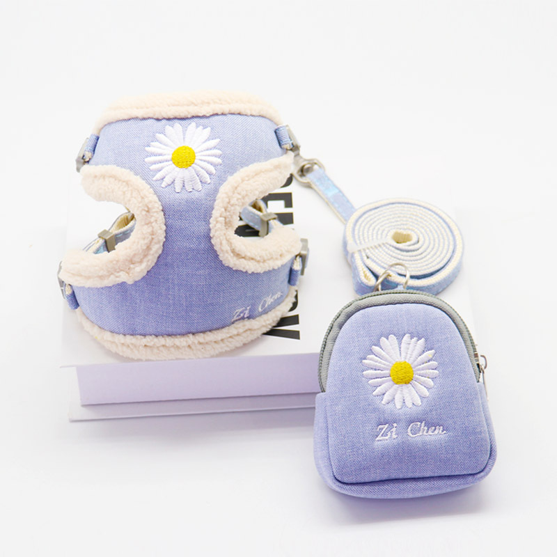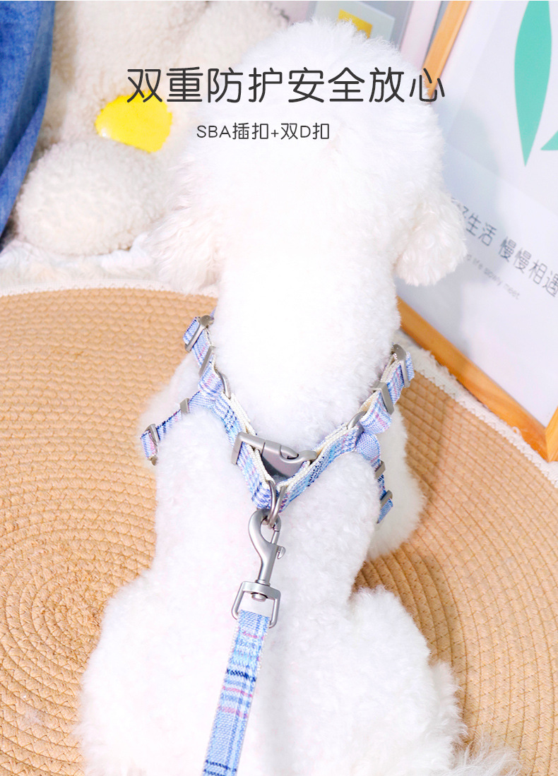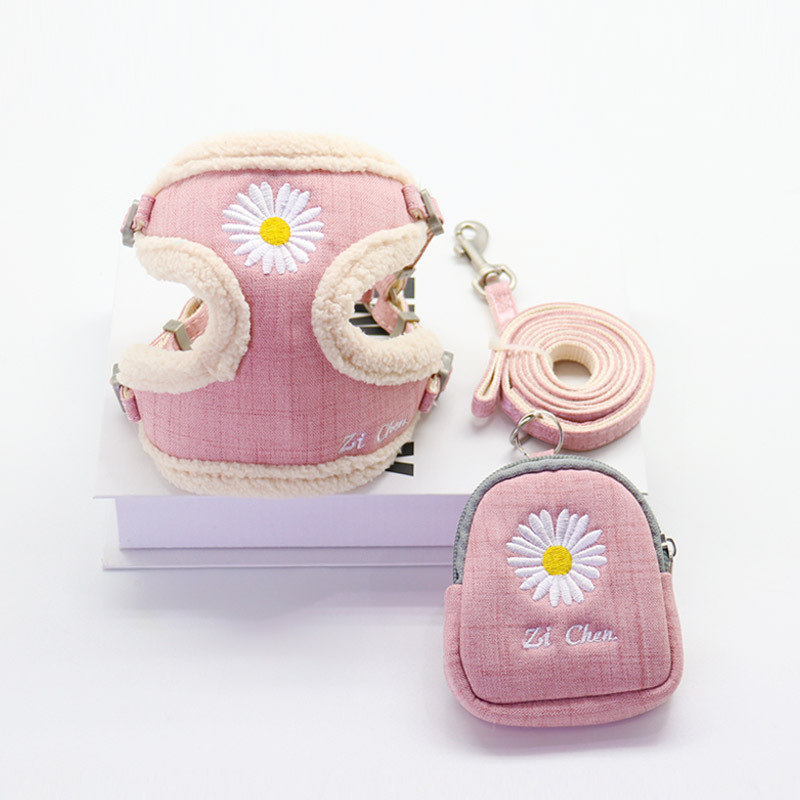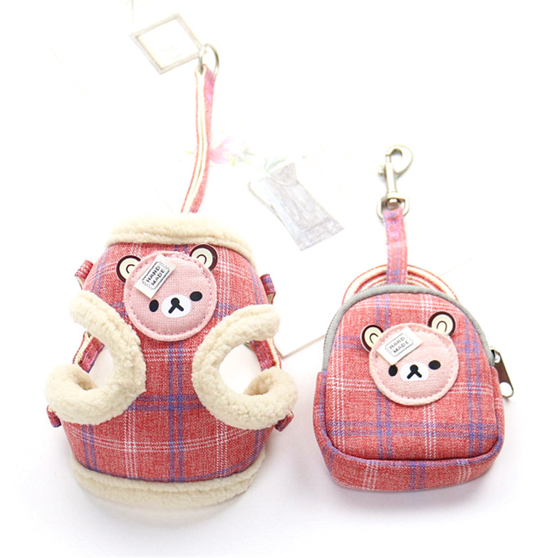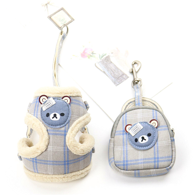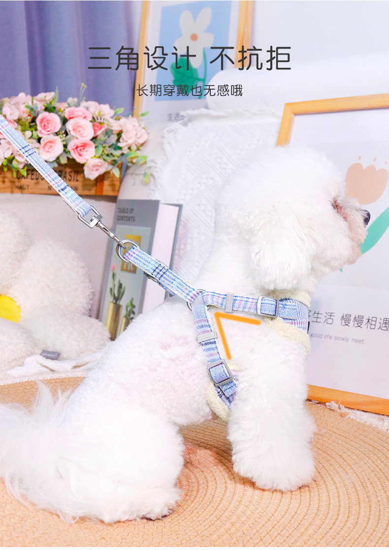 Zichen 애완 동물 제품 공장 겨울 벨벳 가슴 스트랩 견인 벨트 스낵 가방 격자 무늬 가슴 개 가죽 끈