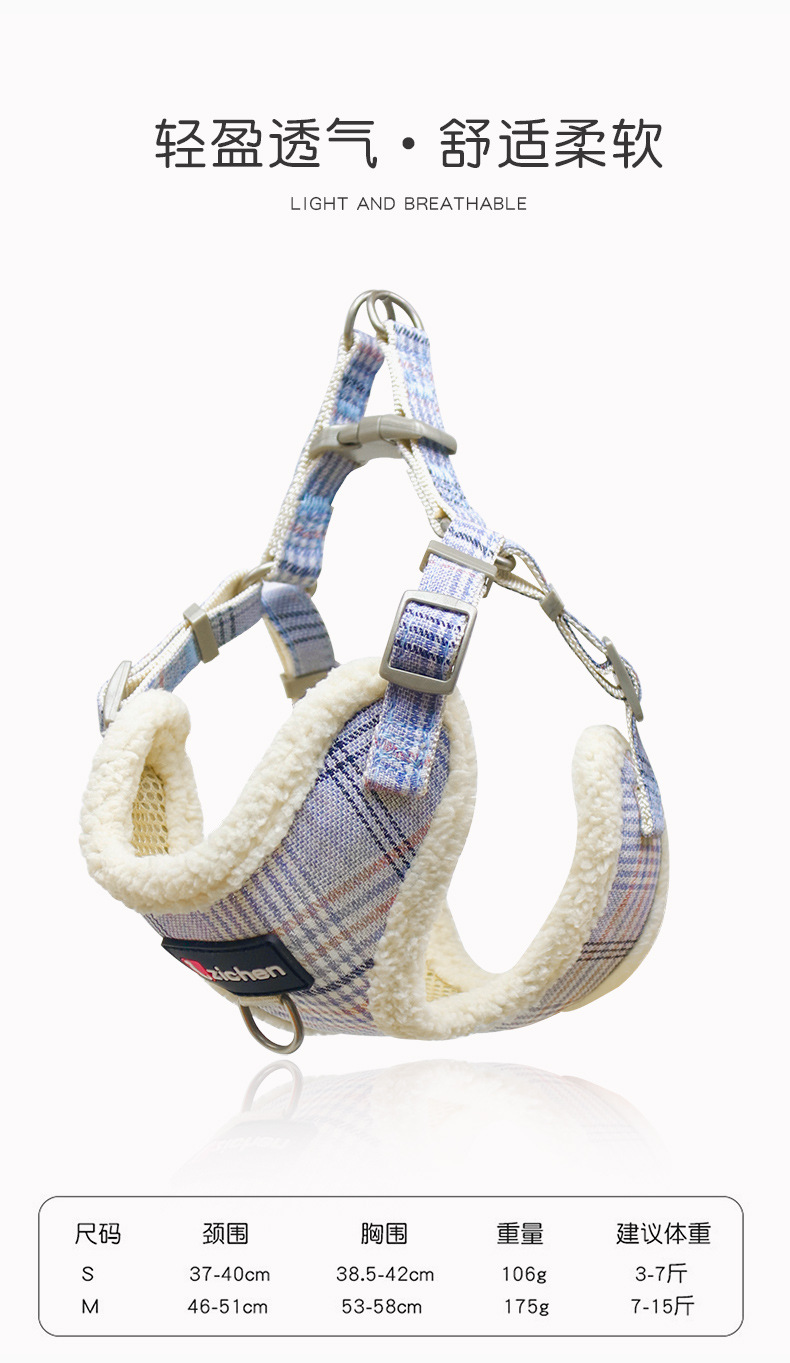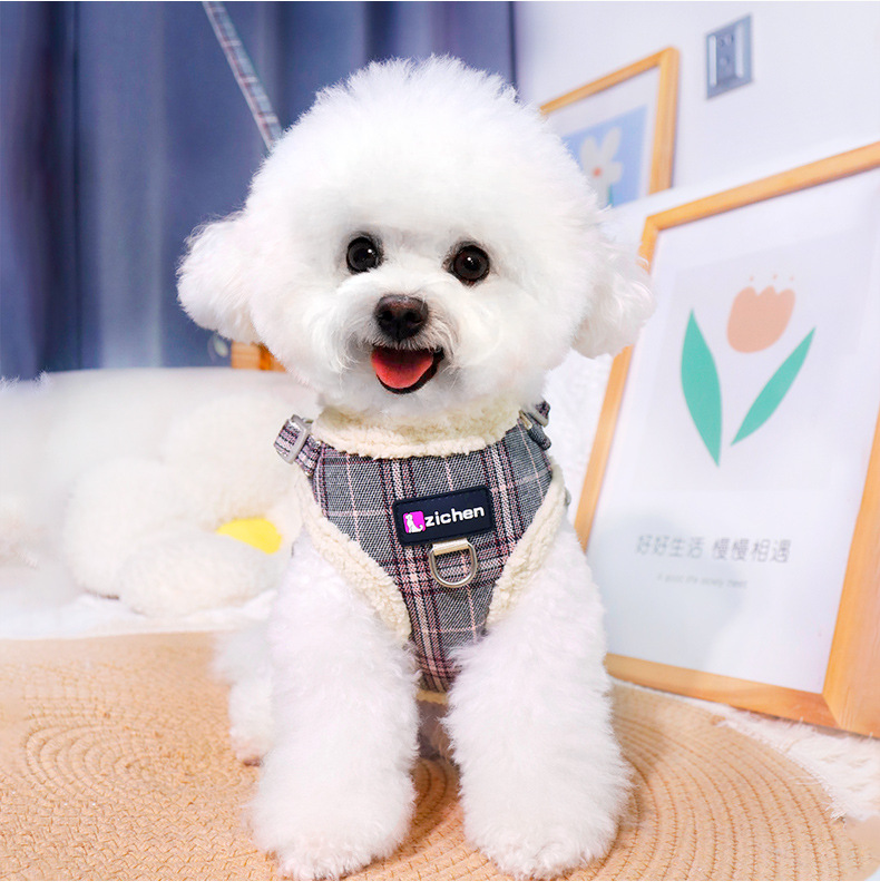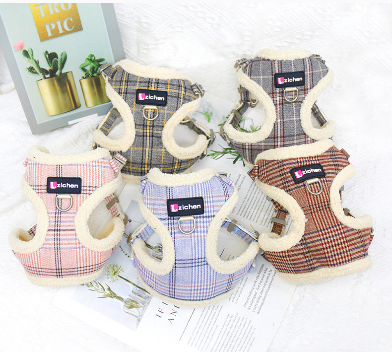 Zichen 애완 동물 제품 공장 겨울 벨벳 가슴 스트랩 견인 벨트 스낵 가방 격자 무늬 가슴 개 가죽 끈스토어 가기