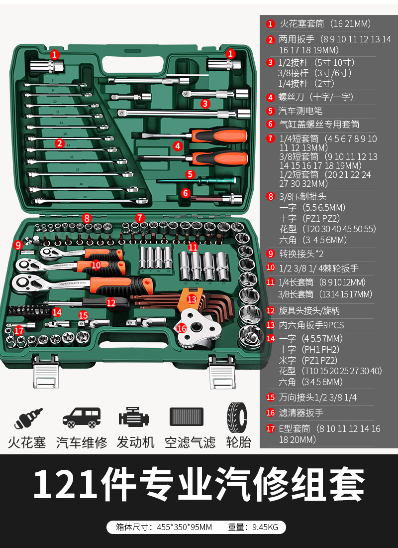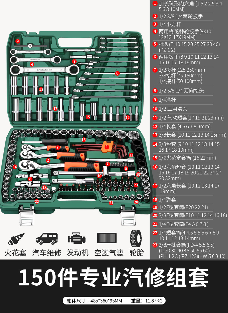 초록의 숲 다기능 렌치 세트/논스톱 렌치 세트 오픈 엔드 렌치 세트 150 피스 퀵 렌치 조합