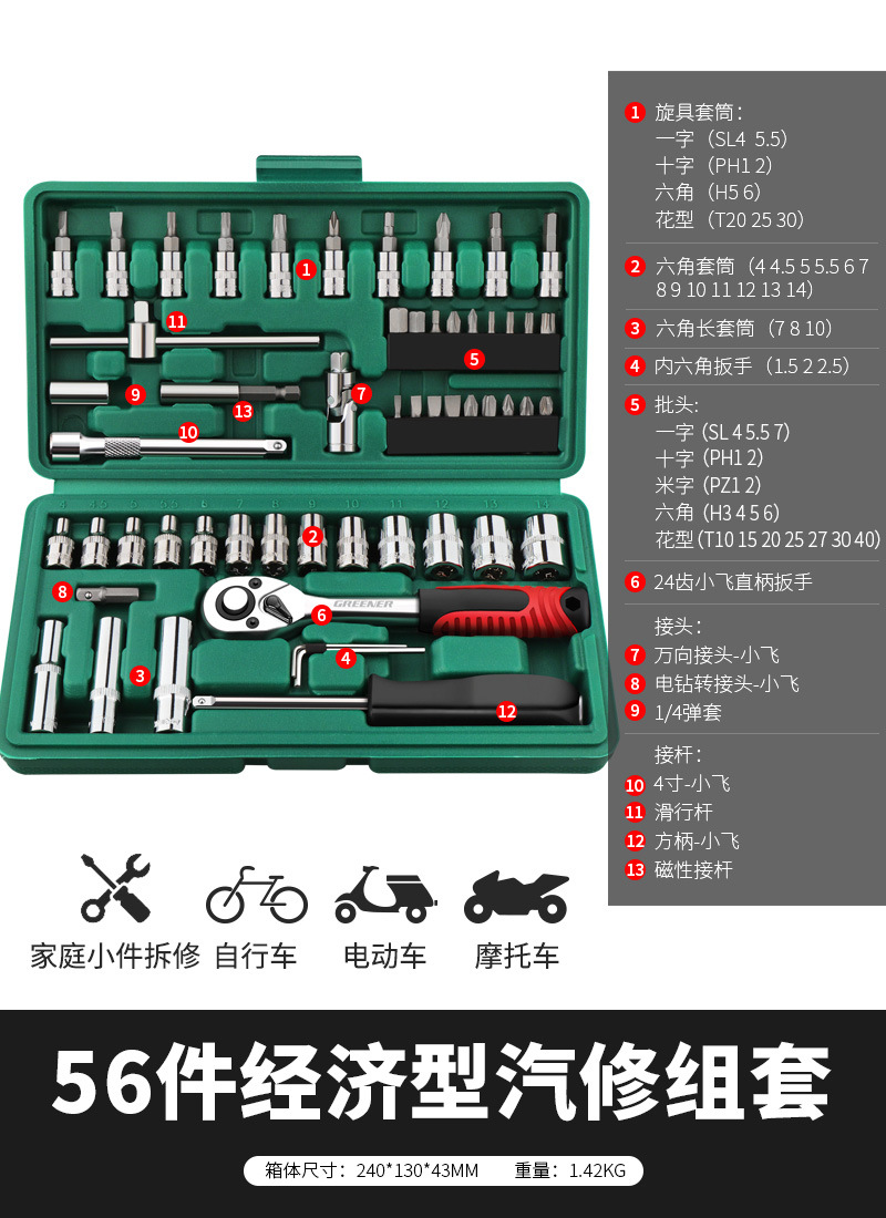 • 향상된 직선 핸들 자동 수리 56 피스 세트