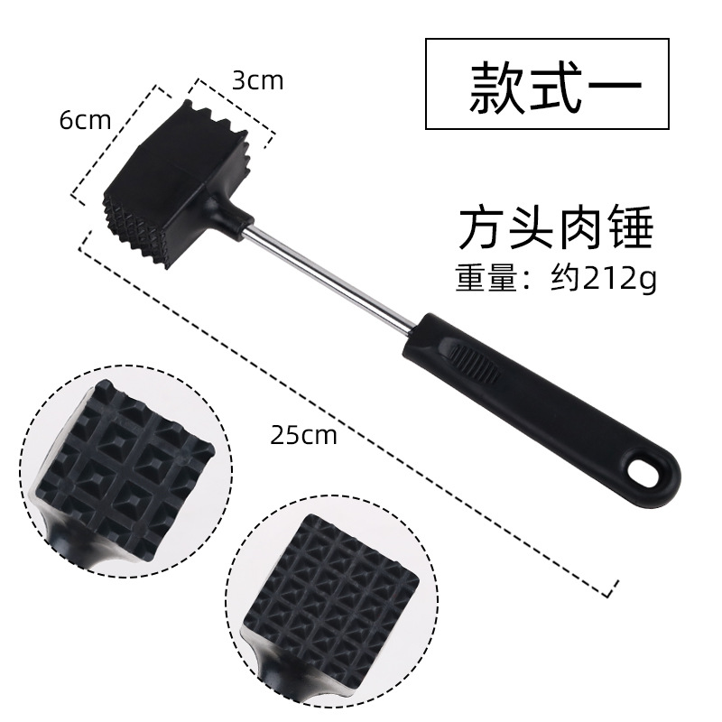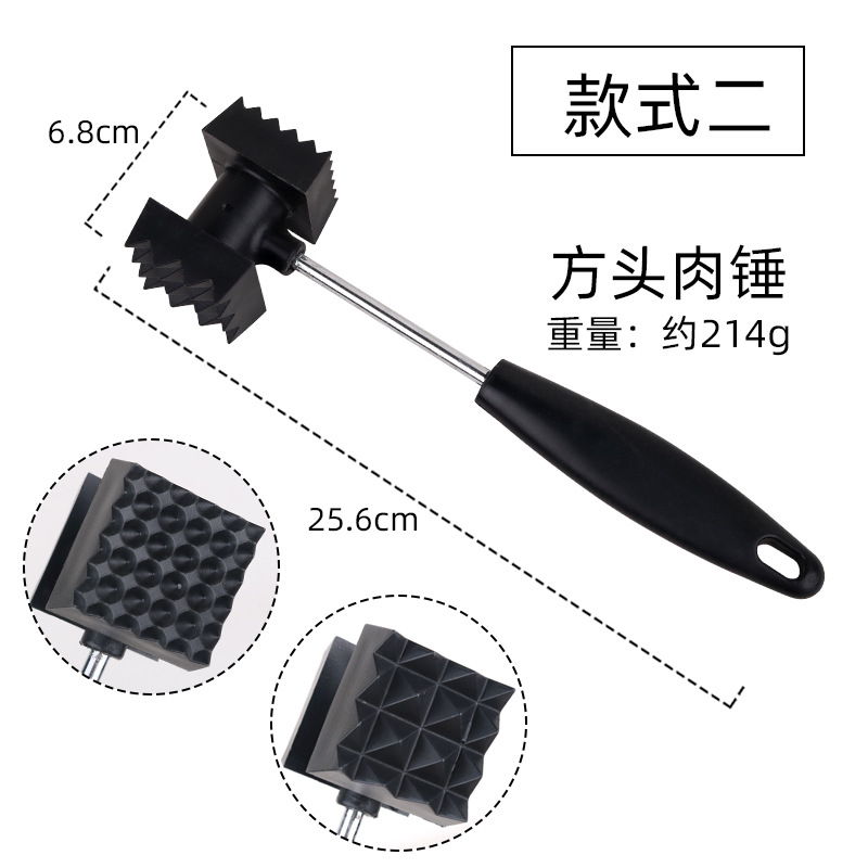 款式二方头肉锤:214g(重量)、144PCS(装箱数)、0.06M3(一箱的体积)