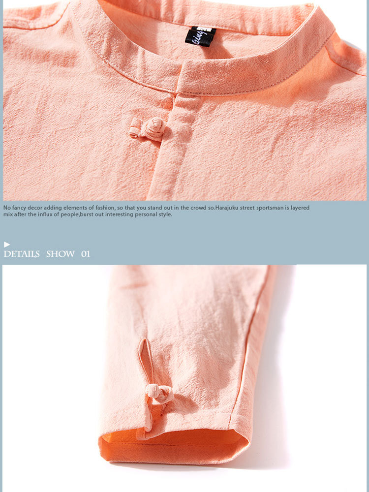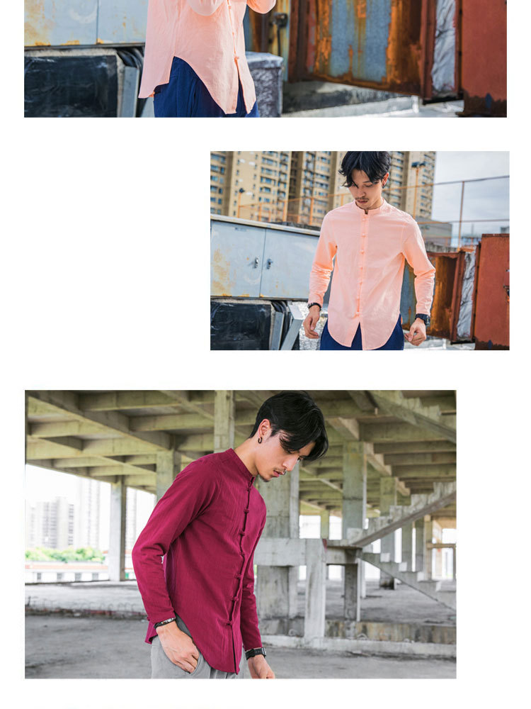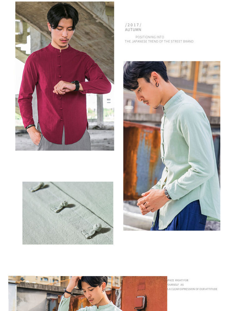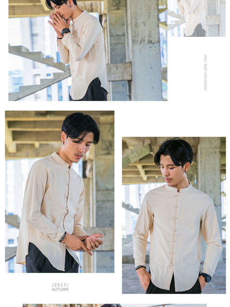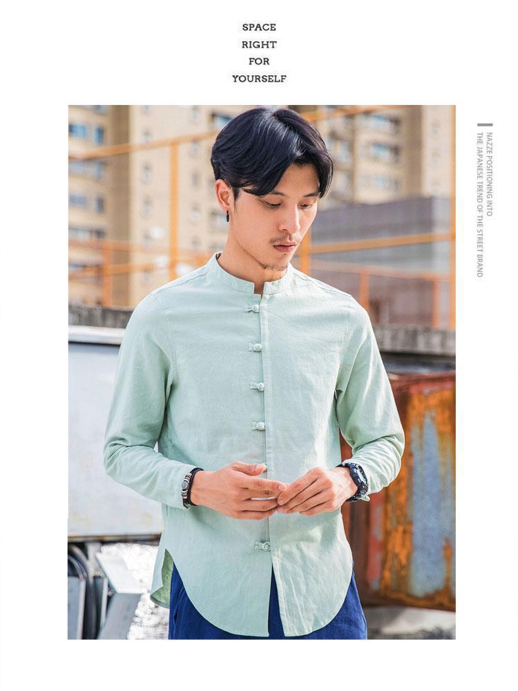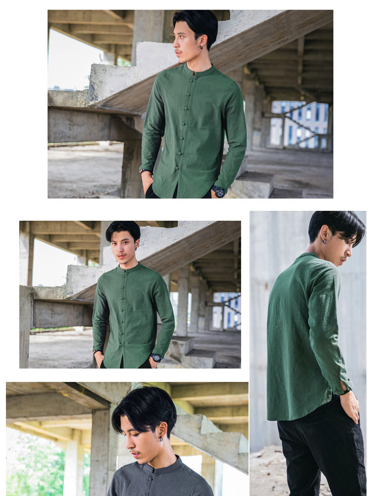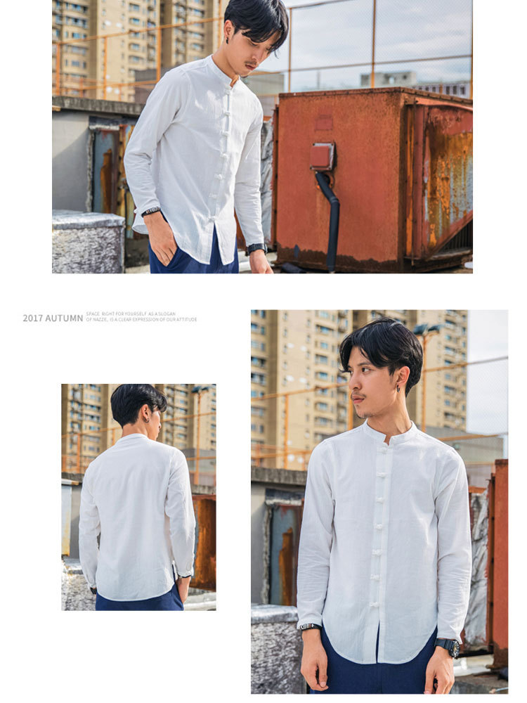 가을 새로운 긴팔 셔츠 남자의 중국 스타일 플러스 사이즈 복고풍 면과 린넨 버클 셔츠