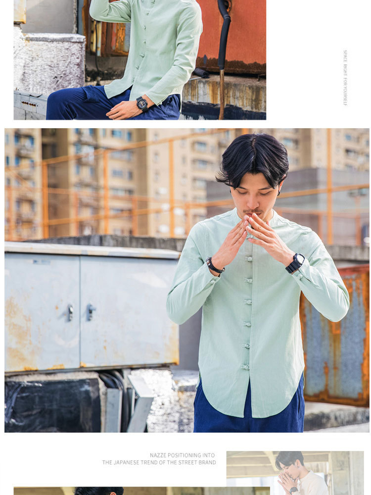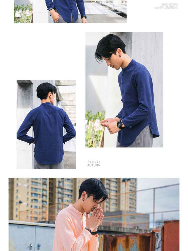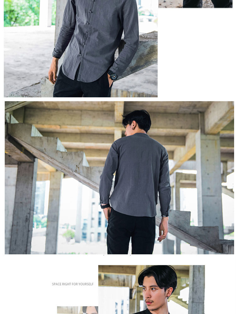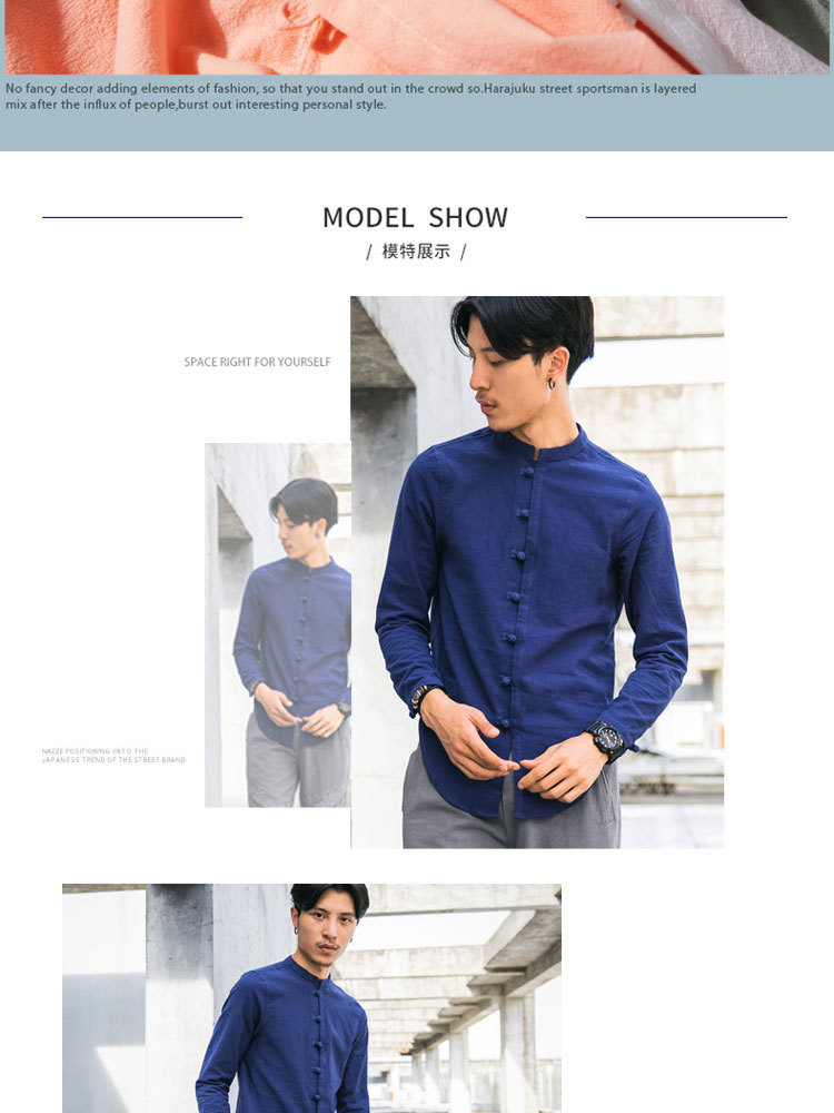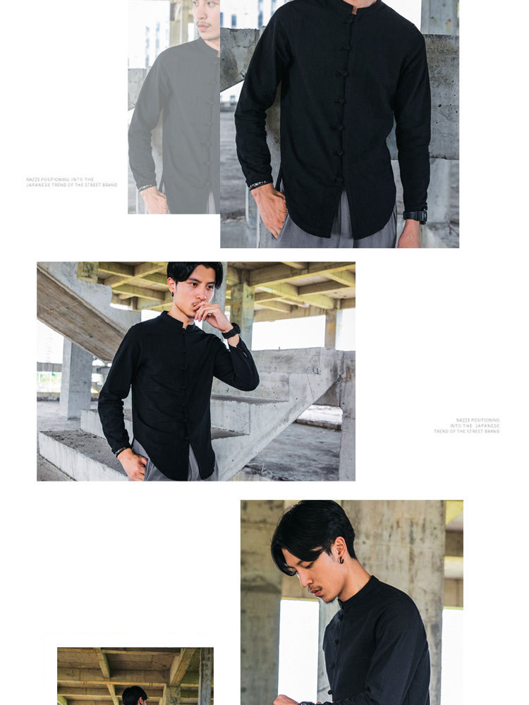 가을 새로운 긴팔 셔츠 남자의 중국 스타일 플러스 사이즈 복고풍 면과 린넨 버클 셔츠스토어 가기