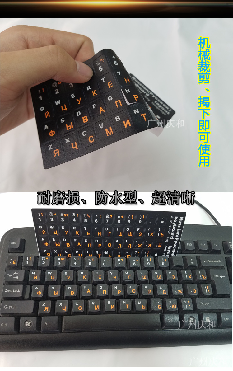 注意:本产品是一个一个撕下来贴到对应的键盘的按键上               的,非整张覆盖的形式,经久耐用。