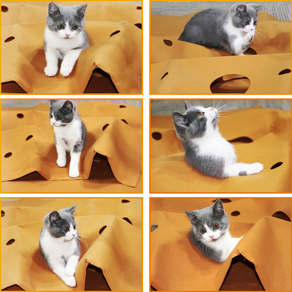 2), The upper layer fabric features a hole design, and the cat can play more freely; with two bell butterfly toys to increase the fun of hide-and-seek.
