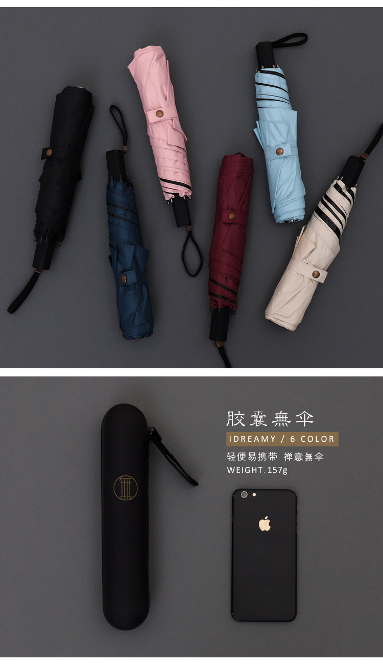 우산 157g 캡슐 우산 울트라 라이트 일본 일반 검은 접착제 연필 우산 맑고 비오는 이중 사용 여성 선물 태양 우산
