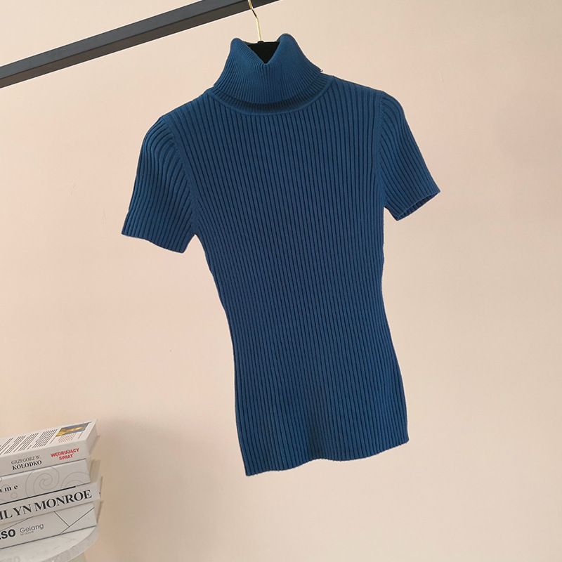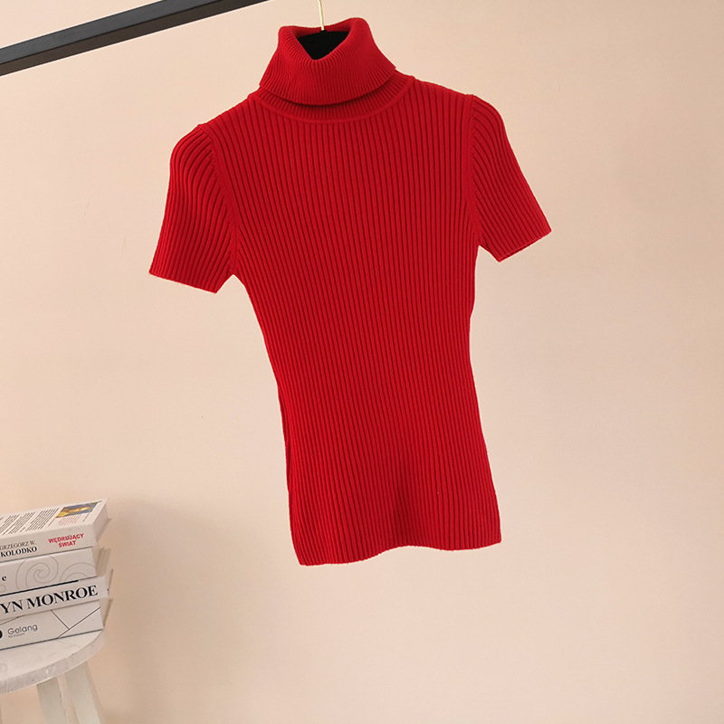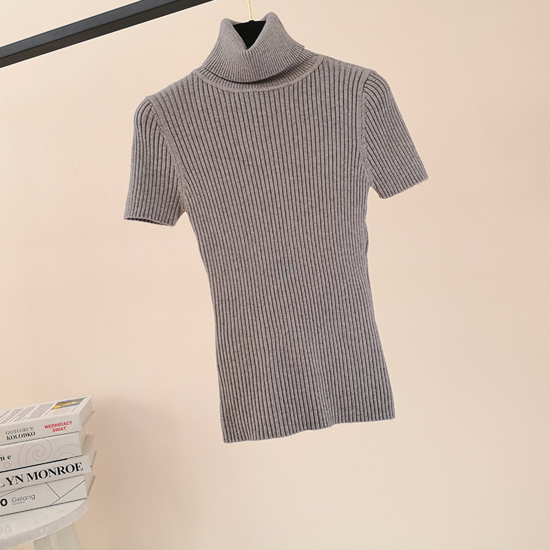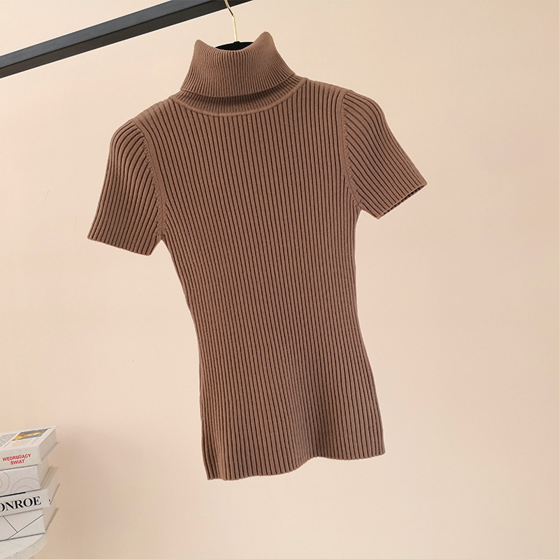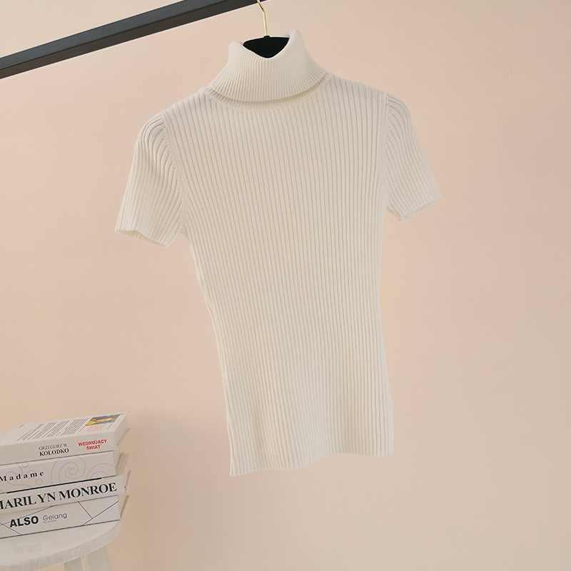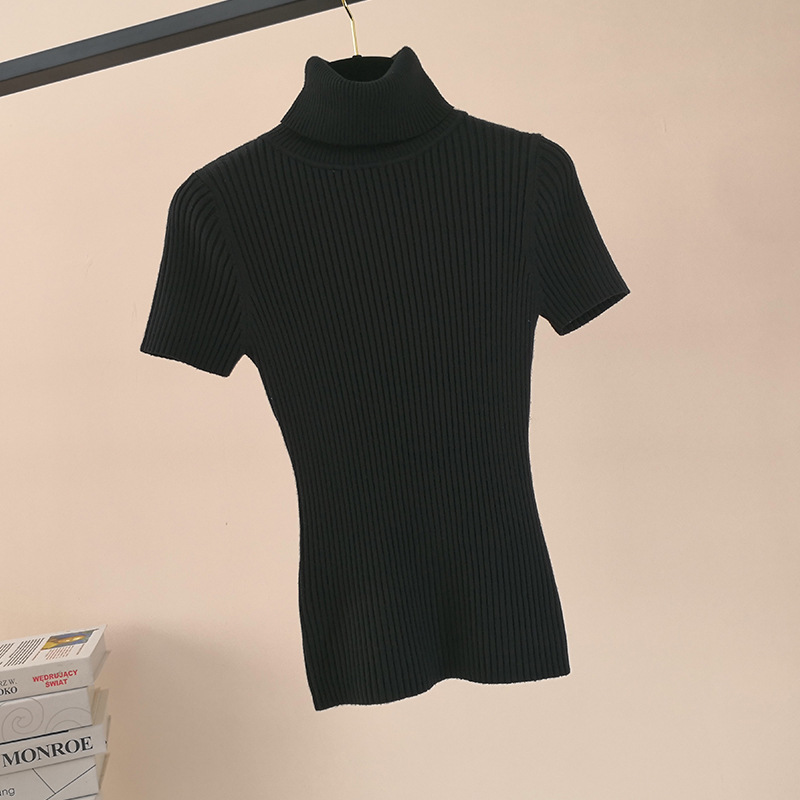 한국 스타일 가을과 겨울 새로운 단색 꽉 풀오버 티셔츠 여성용 하이 넥 반팔 핏 내부 스웨터 여성 탑