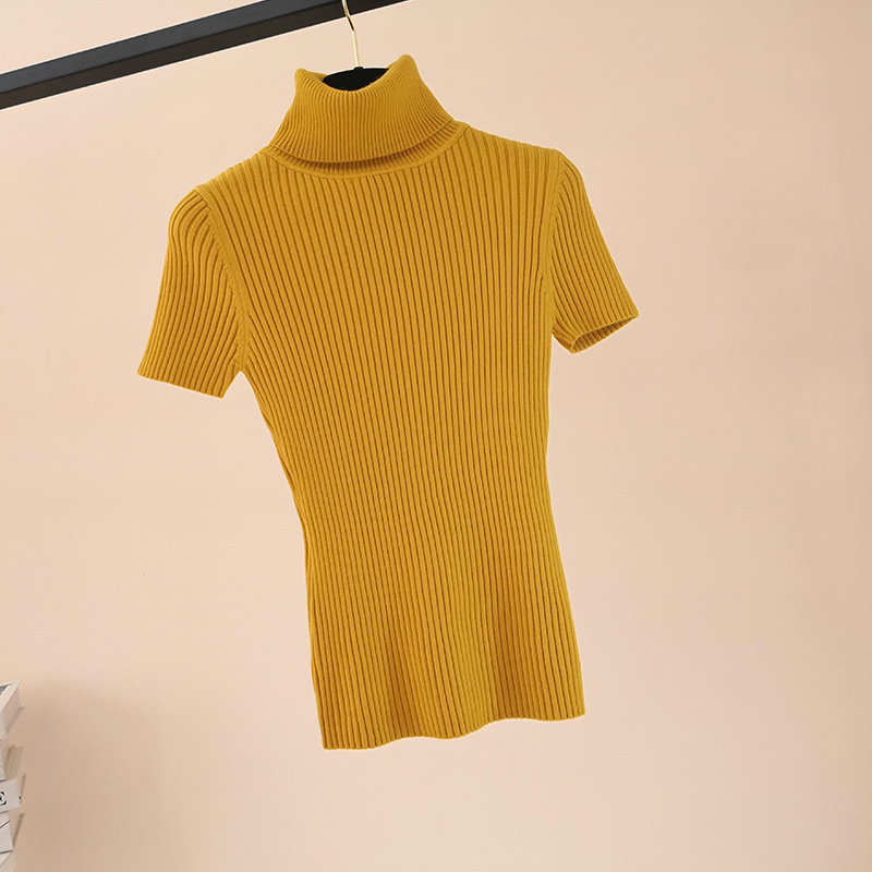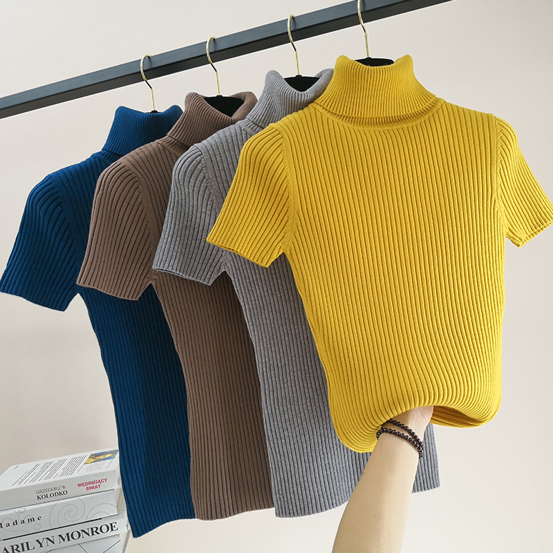 한국 스타일 가을과 겨울 새로운 단색 꽉 풀오버 티셔츠 여성용 하이 넥 반팔 핏 내부 스웨터 여성 탑스토어 가기