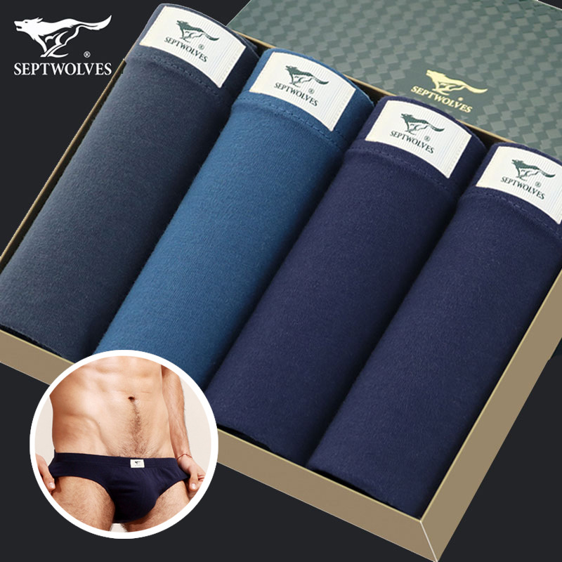 일곱 늑대 단색 브리프 면 남자 속옷 박스 남자 속옷 면 선물 상자 속옷 도매스토어 가기