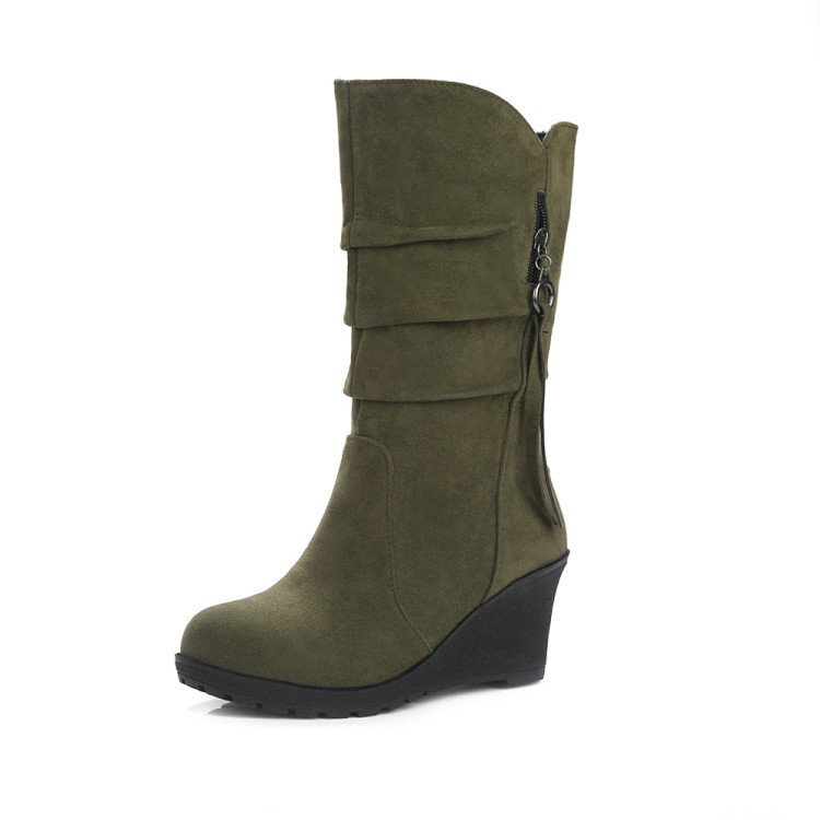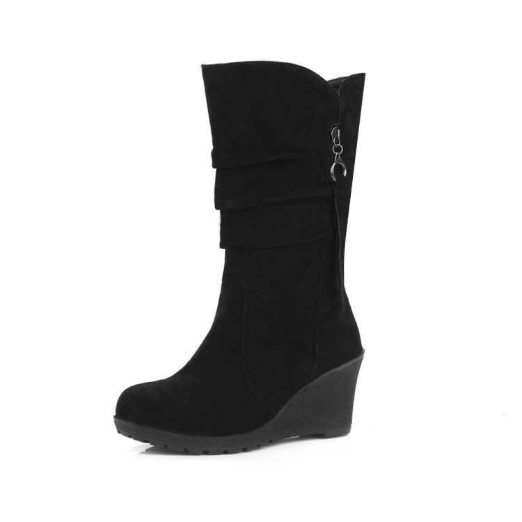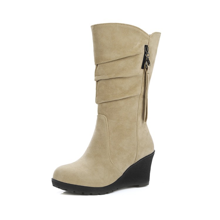 아마존 크로스 보더 공급 가을과 겨울 여성 부츠 웨지 두꺼운 밑창 면 부츠 유럽과 미국 주름 술 부츠 재고