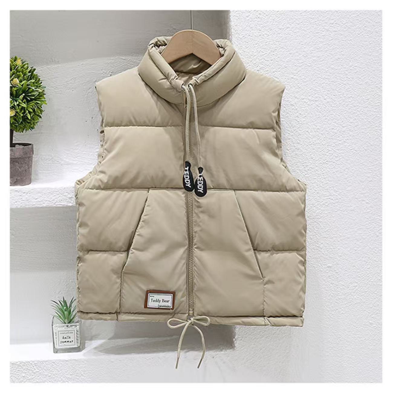 2029 한국 스타일 어린이 스탠드 칼라 편지 패턴 조끼 두꺼운 소년 소녀 내부 탱크 조끼 가을과 겨울 유행