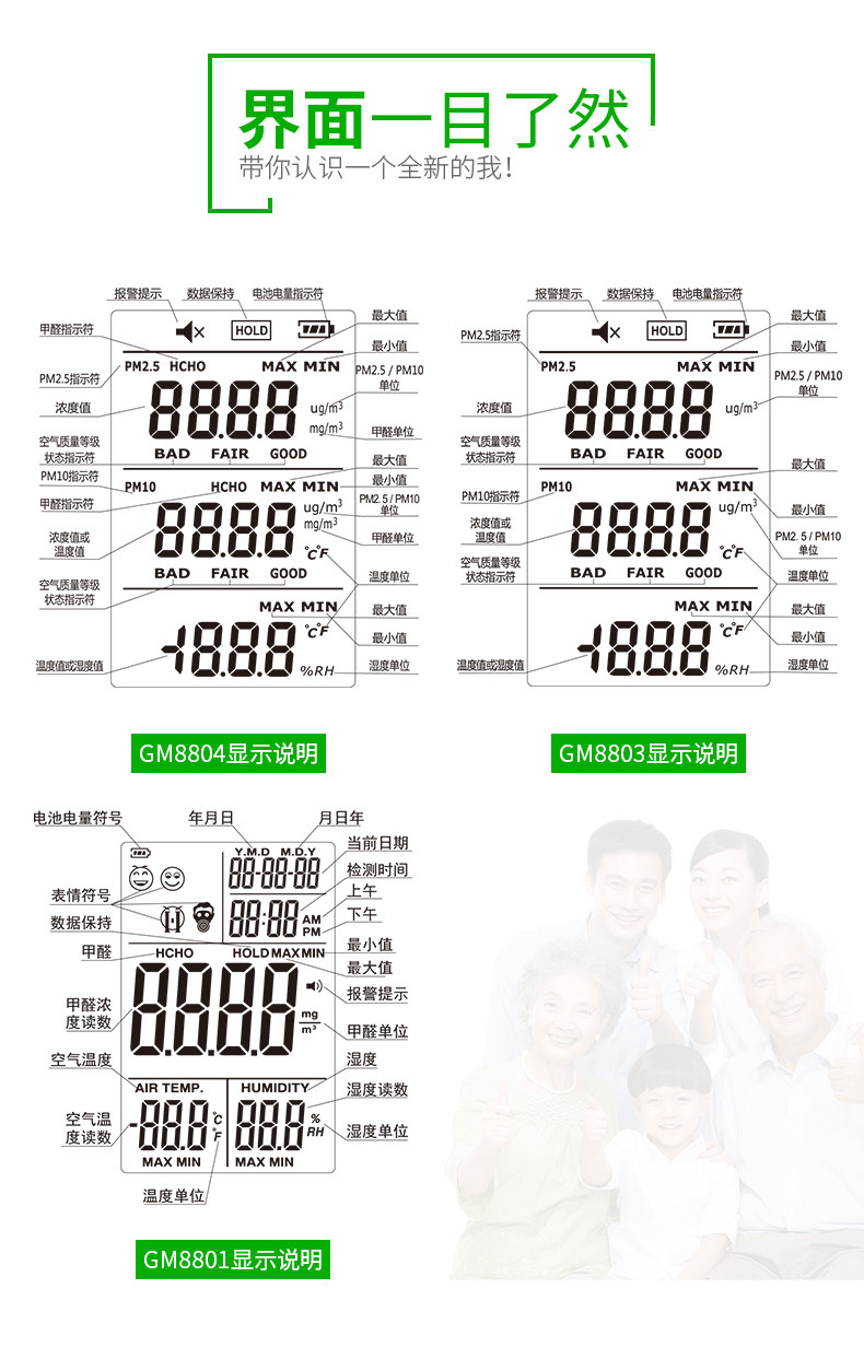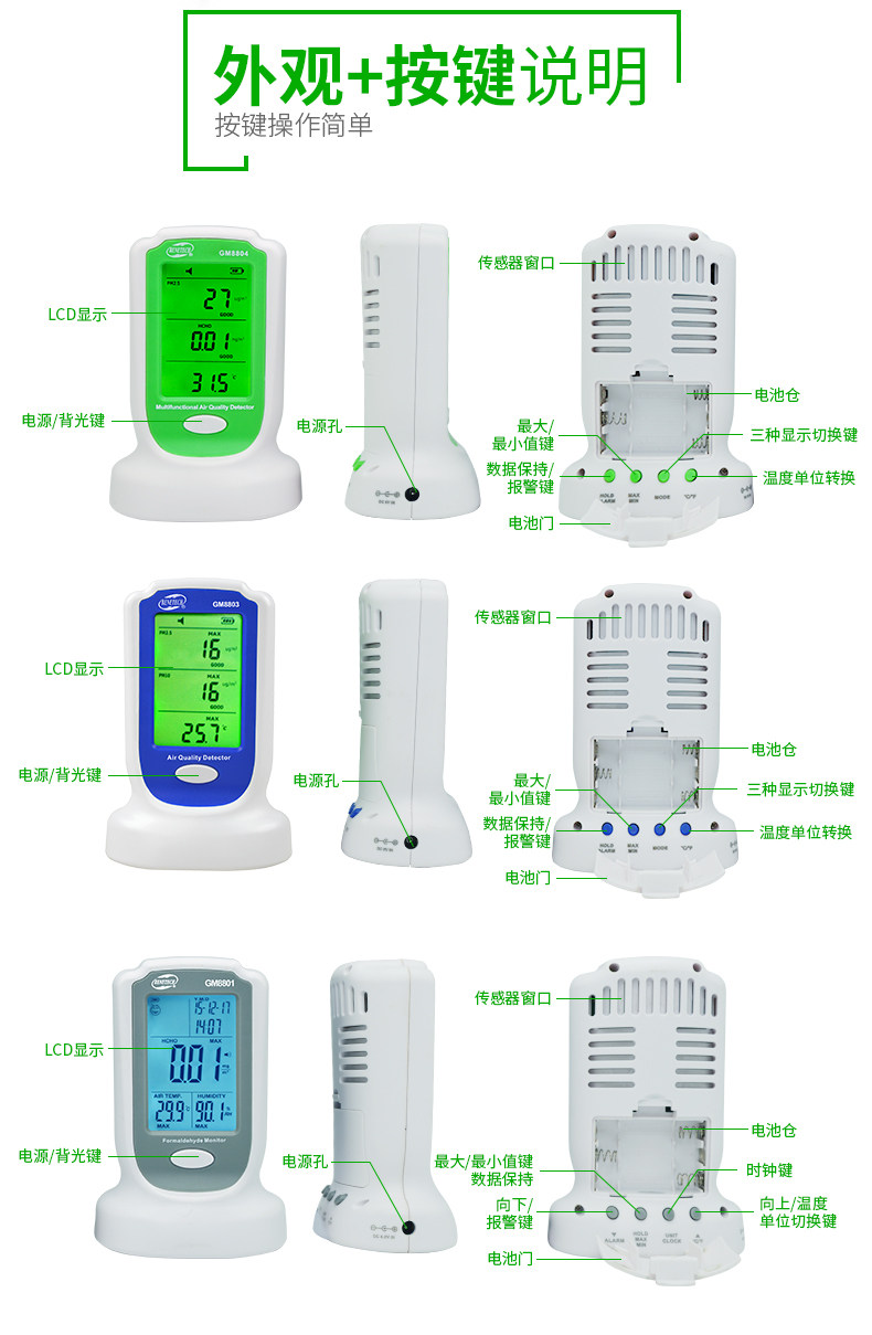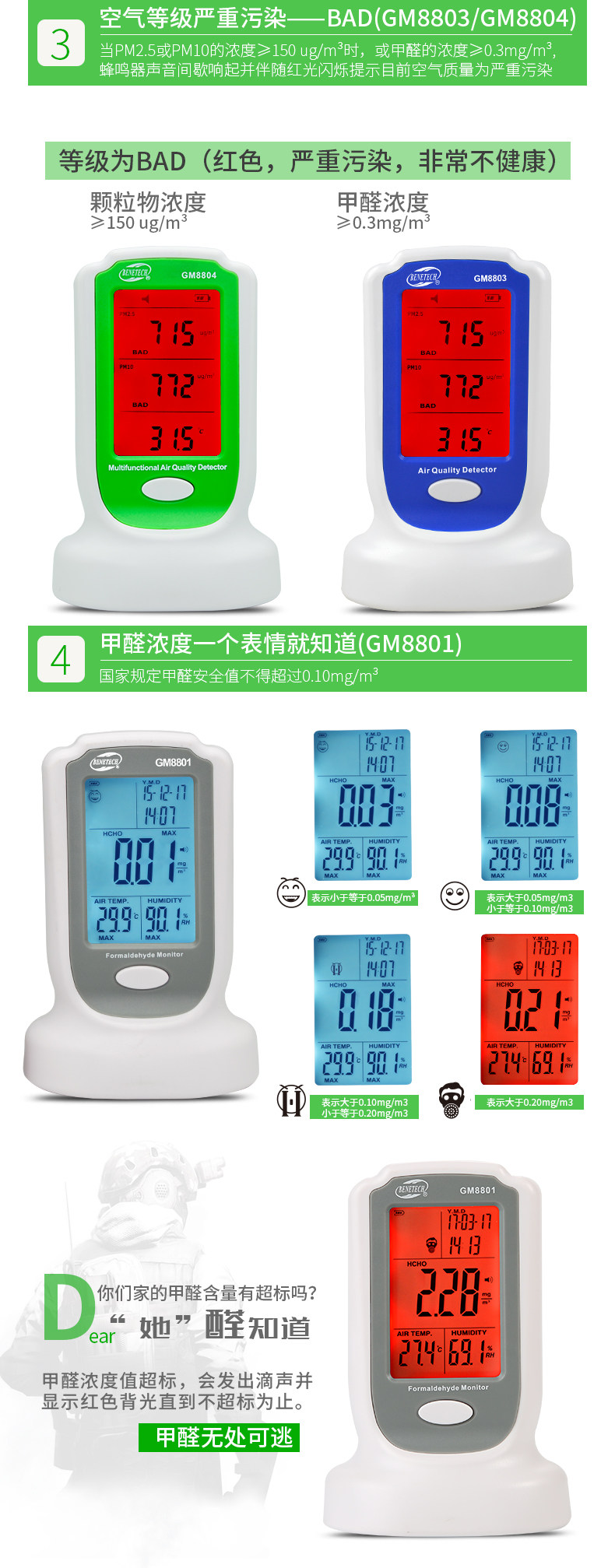 • 8804 (포름 알데히드, PM2.5, PM10, 온도 및 습도)
